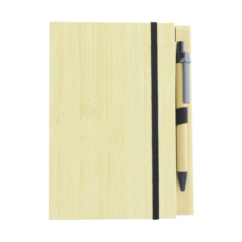 Agenda bambú con esfero ecológico y con 80 hojas rayadas MEDIDAS: ALTO: 18,1 cm, ANCHO: 13,1 cm , LARGO: Esfero: 14 cm, PROFUNDIDAD:1,4 cm