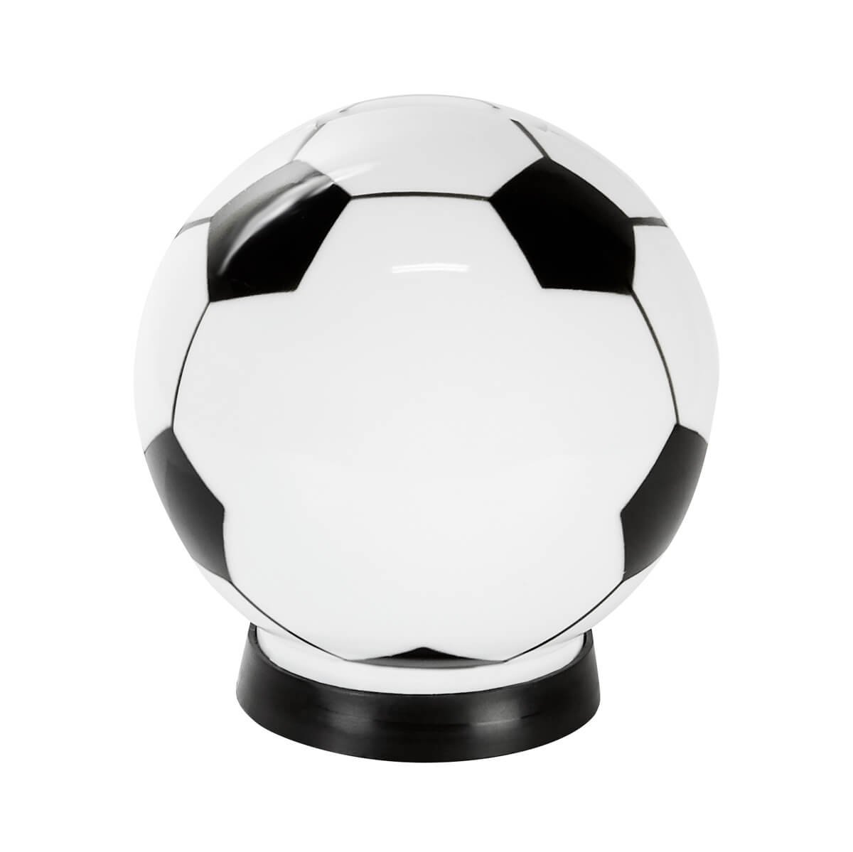 Alcancia con base en forma de balon de futbol. MATERIAL: Plastico, TAMAÑO: 7.2 x 8.2 cm