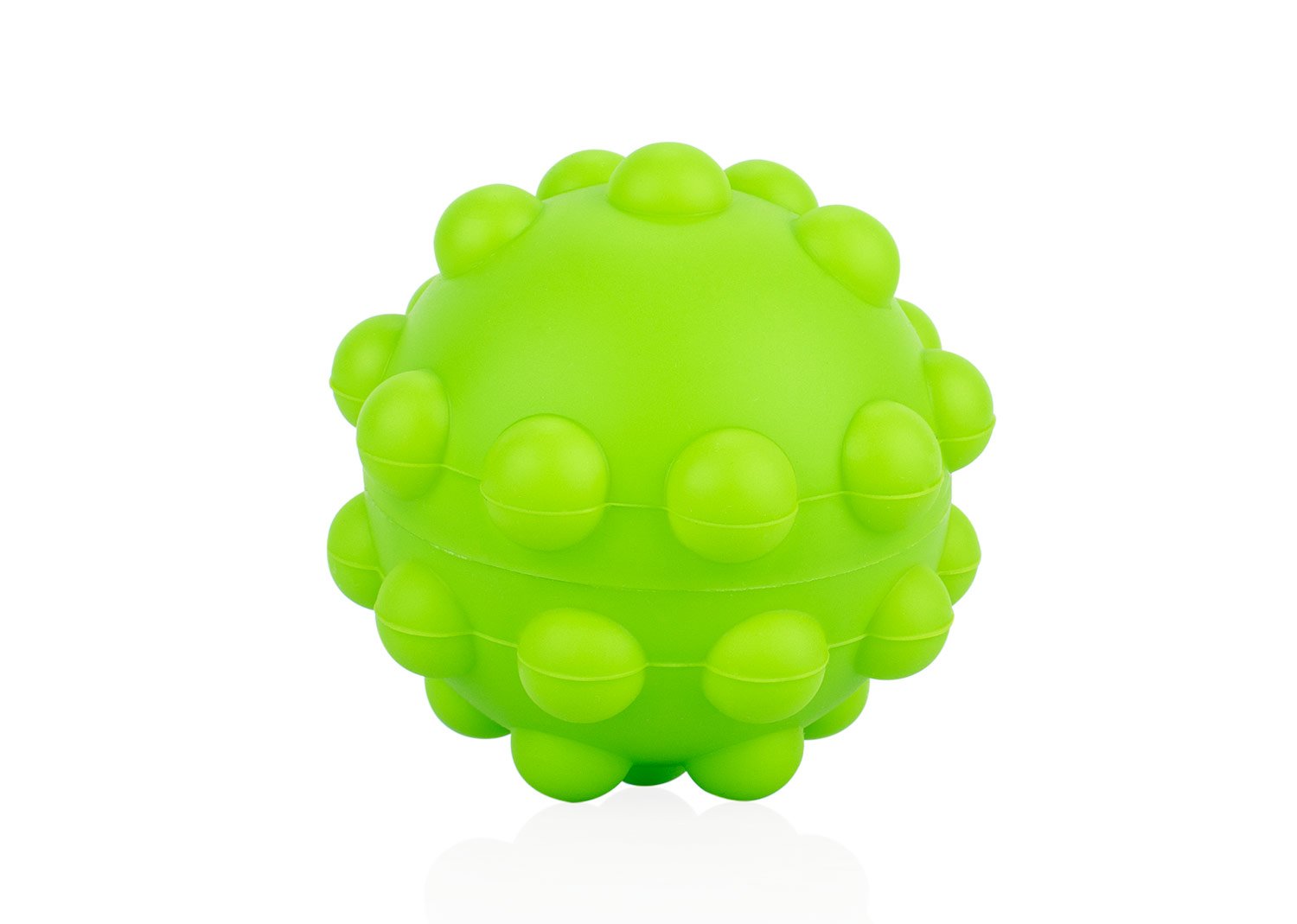 Bola de silicona con diseño ergonómico y superficie texturizada, ideal para masajes, ejercicios de relajación o actividades sensoriales. Su forma compacta y material flexible la hacen cómoda de usar y fácil de llevar a cualquier lugar. Perfecta para liberar tensión o estimular el tacto de manera divertida y práctica. MATERIAL: Silicona. MEDIDAS: Formato: (Diámetro): (Ø 5,8). Peso: 22 gr.