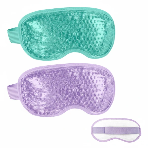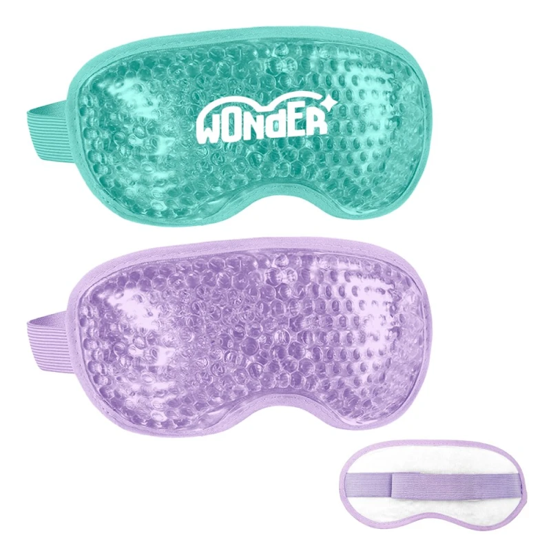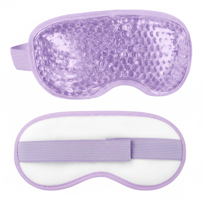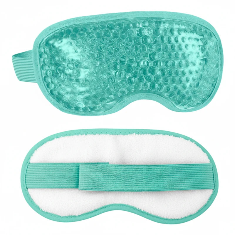 Antifaz en PVC para frío y calor con cápsulas de gel y forro interior en felpa. Con cinta elastica trasera. De 19 x 9 cm.