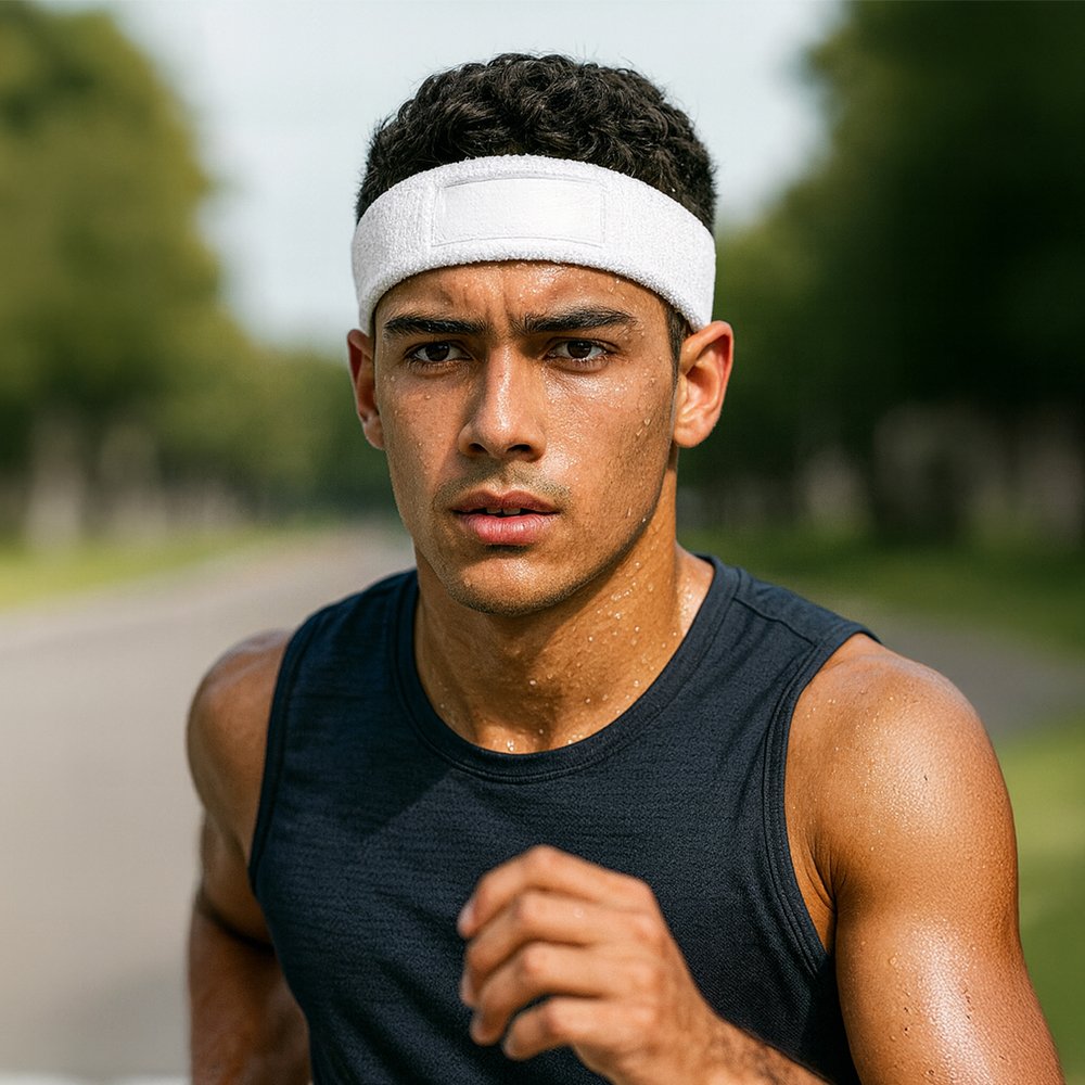 Balaca deportiva para el sudor en poliéster. Con parche para logo. Medidas: 18 cm x 6 cm. (Parche para logo).