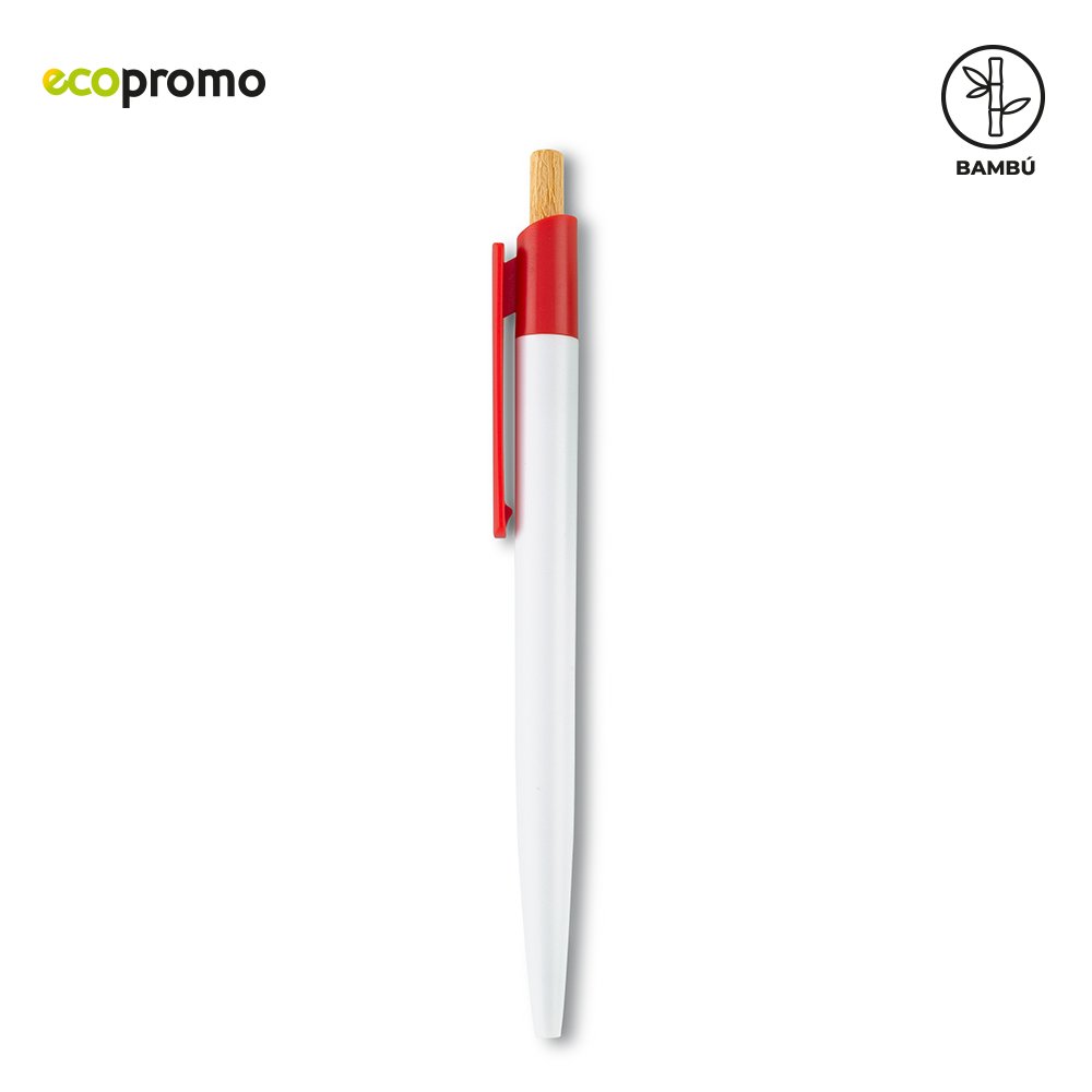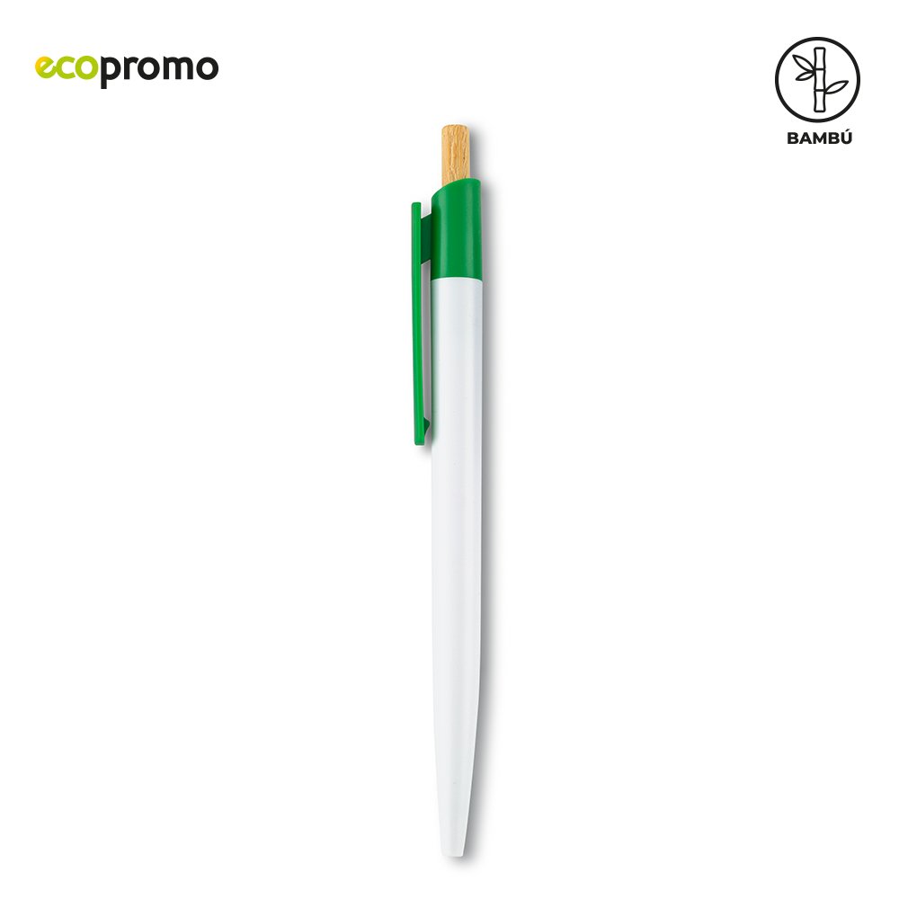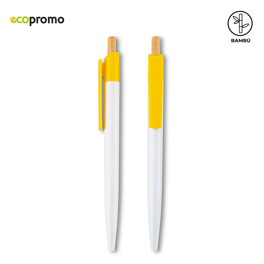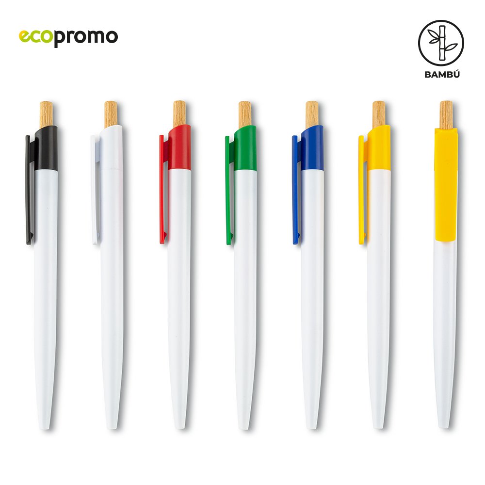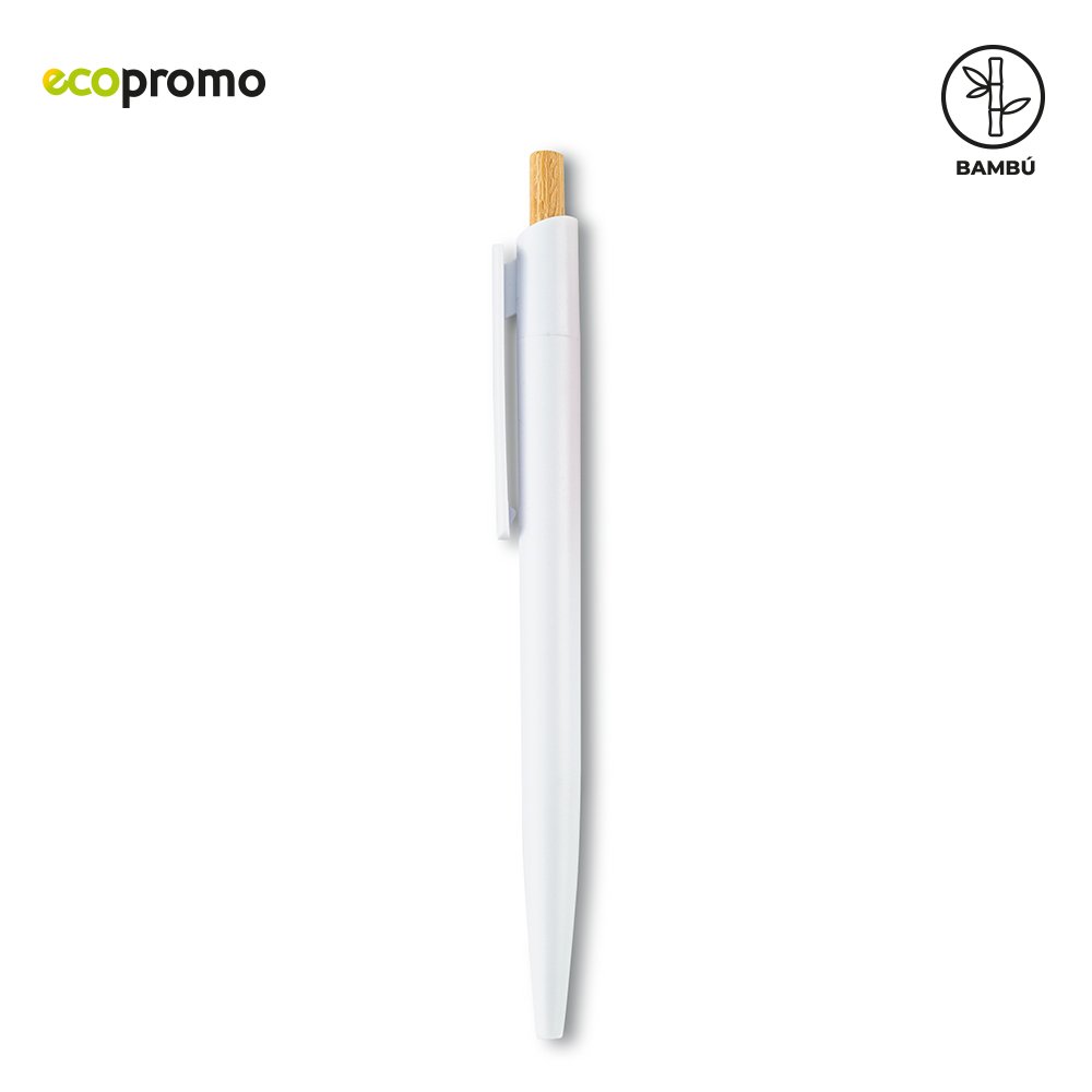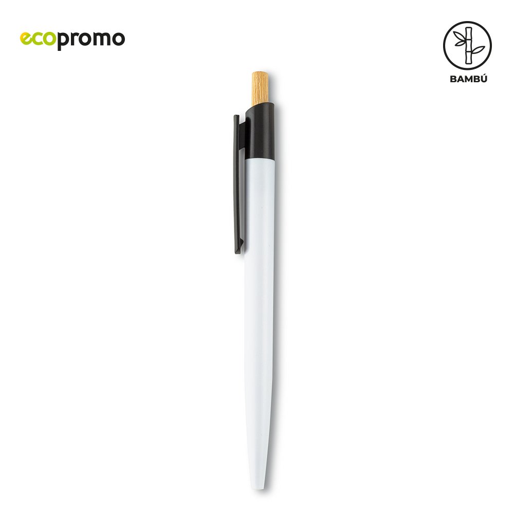 Bolígrafo plástico con mecanismo push y partes en bambú. Medidas: 14 cm.
