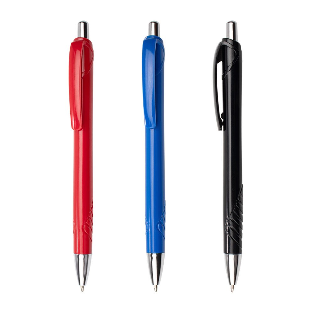 Bolígrafo con cuerpo de color sólido, sistema de apertura retráctil, detalle marcado en la parte inferior y adorno cromado en la punta. (Bolígrafo/Esfero). MATERIAL: ABS. MEDIDAS: Formato: (Alto X Diámetro X Ancho con Clip): (14 X Ø 0,6 X 1,2). Peso: 8 gr. MARCA: SE SUGIERE: Tampografia Boligrafos plásticos