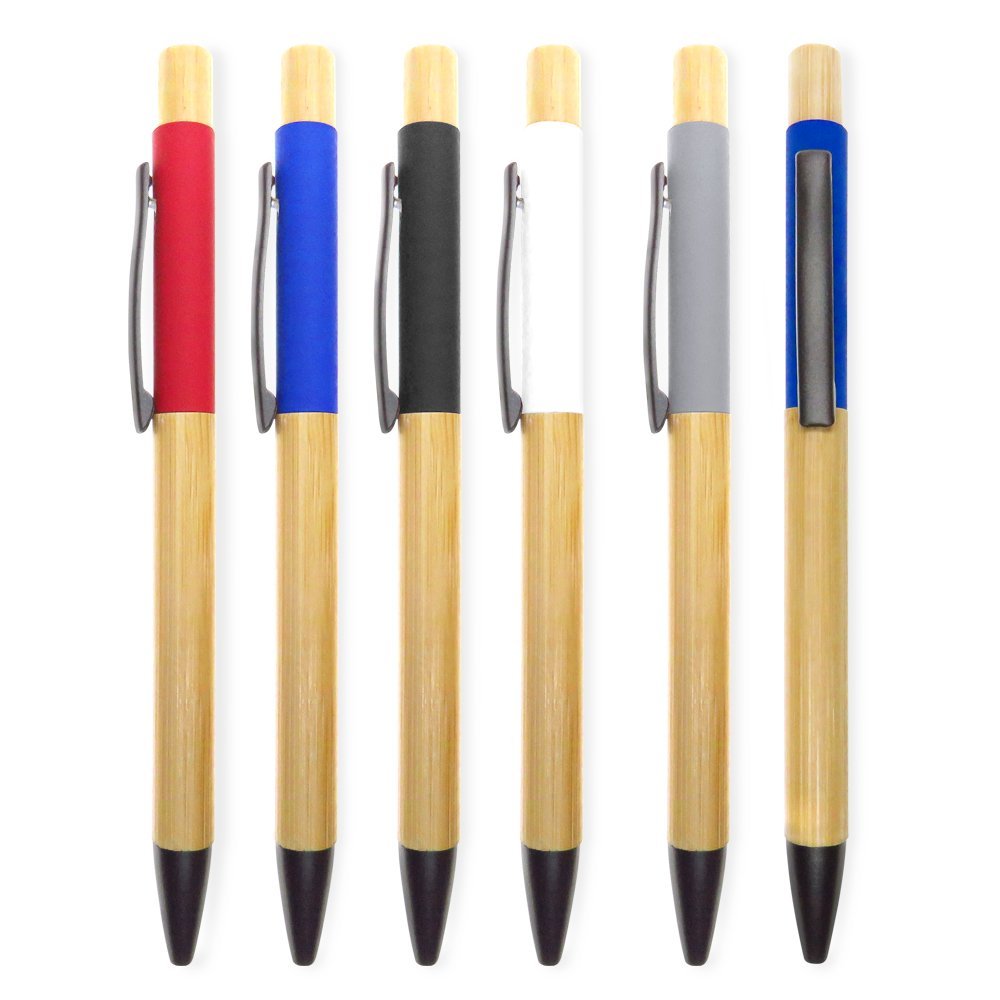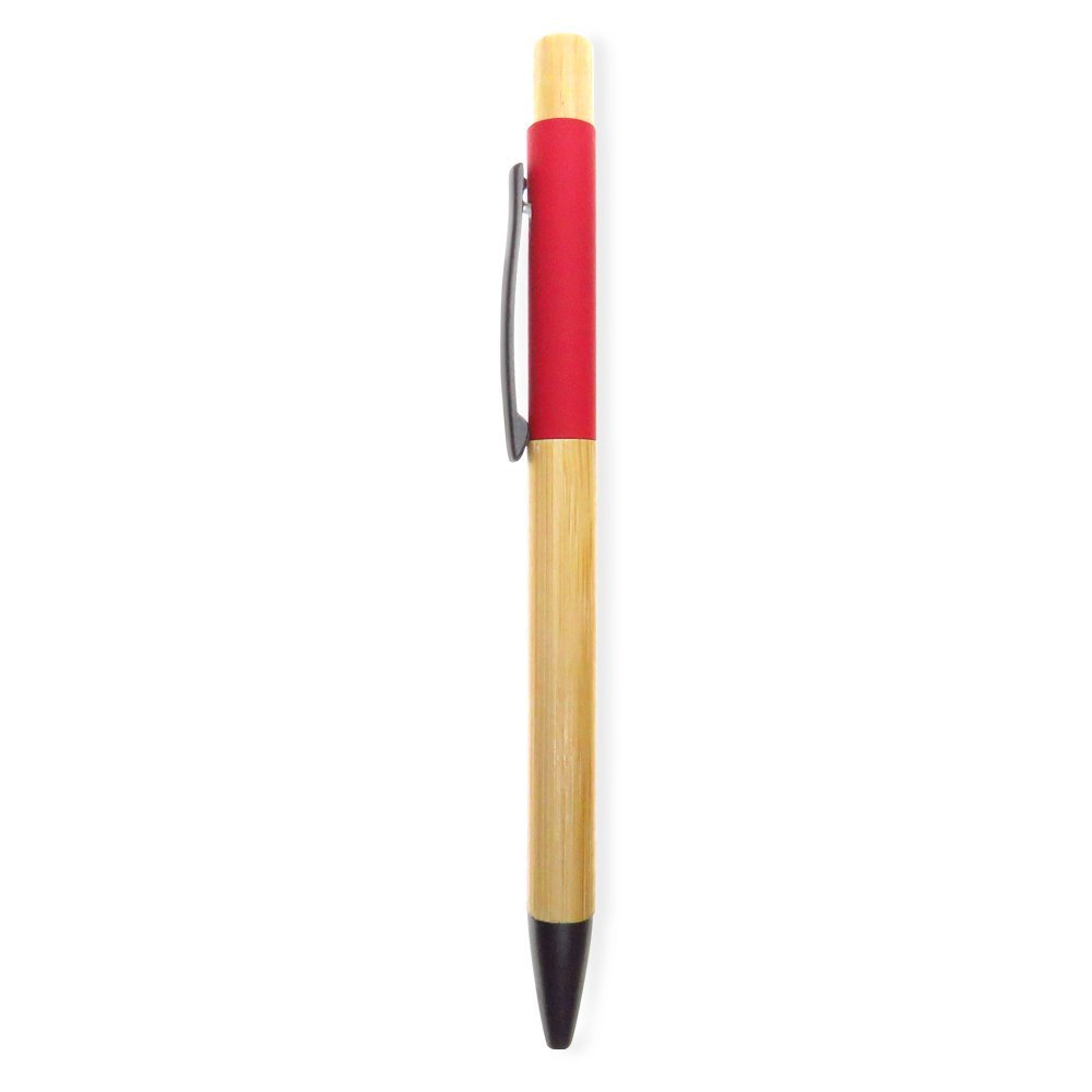 Bolígrafo en bambú con partes metalizadas. Mecanismo push en bambú. Clip metálico. Medidas: 14.4 cm. Marca: / Láser / Tampografía