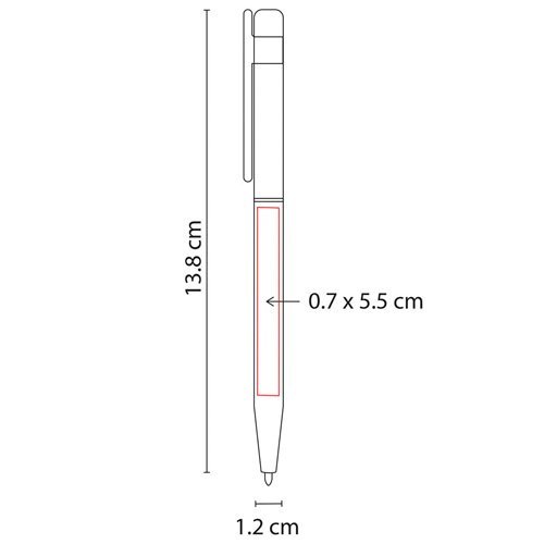Mecanismo twist. Incluye funda. CATEGORÍA: BOLIGRAFOS METALICOS MATERIAL: Aleación Cobre TAMAÑO: 1.2 x 13.8 cm COLORES: G/S CAPACIDAD: COLOR DE TINTA: Negra INFORMACIÓN DE IMPRESIÓN TÉCNICA: Grabado Espejo / Serigrafía AREA: 0.7 x 5.5 cm INFORMACIÓN DE EMPAQUE MEDIDA: 39 x 18 x 34 cm. PESO: 17.50 kgs. CANTIDAD: 500 pza(s).