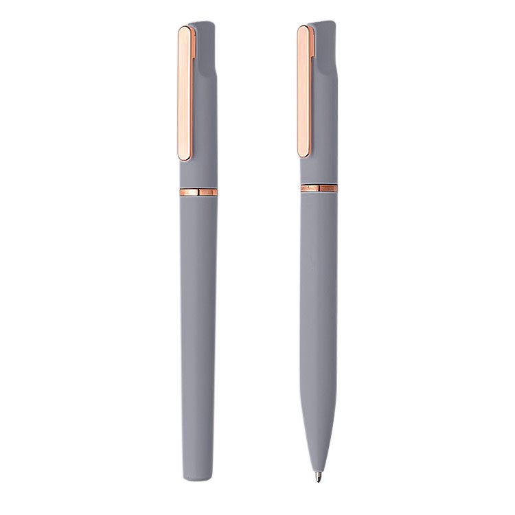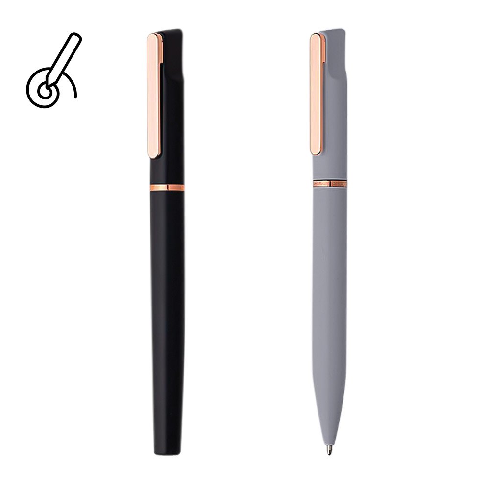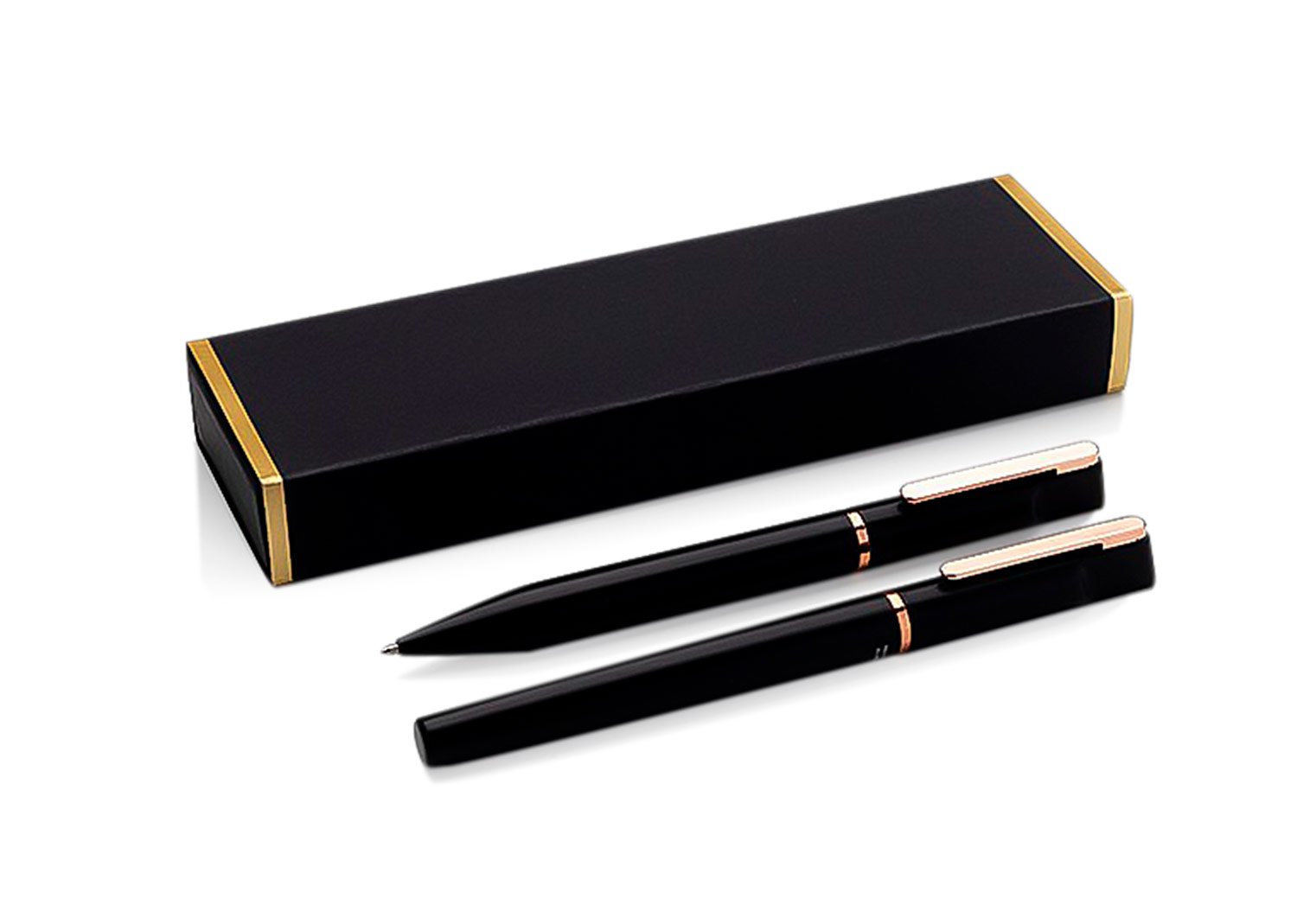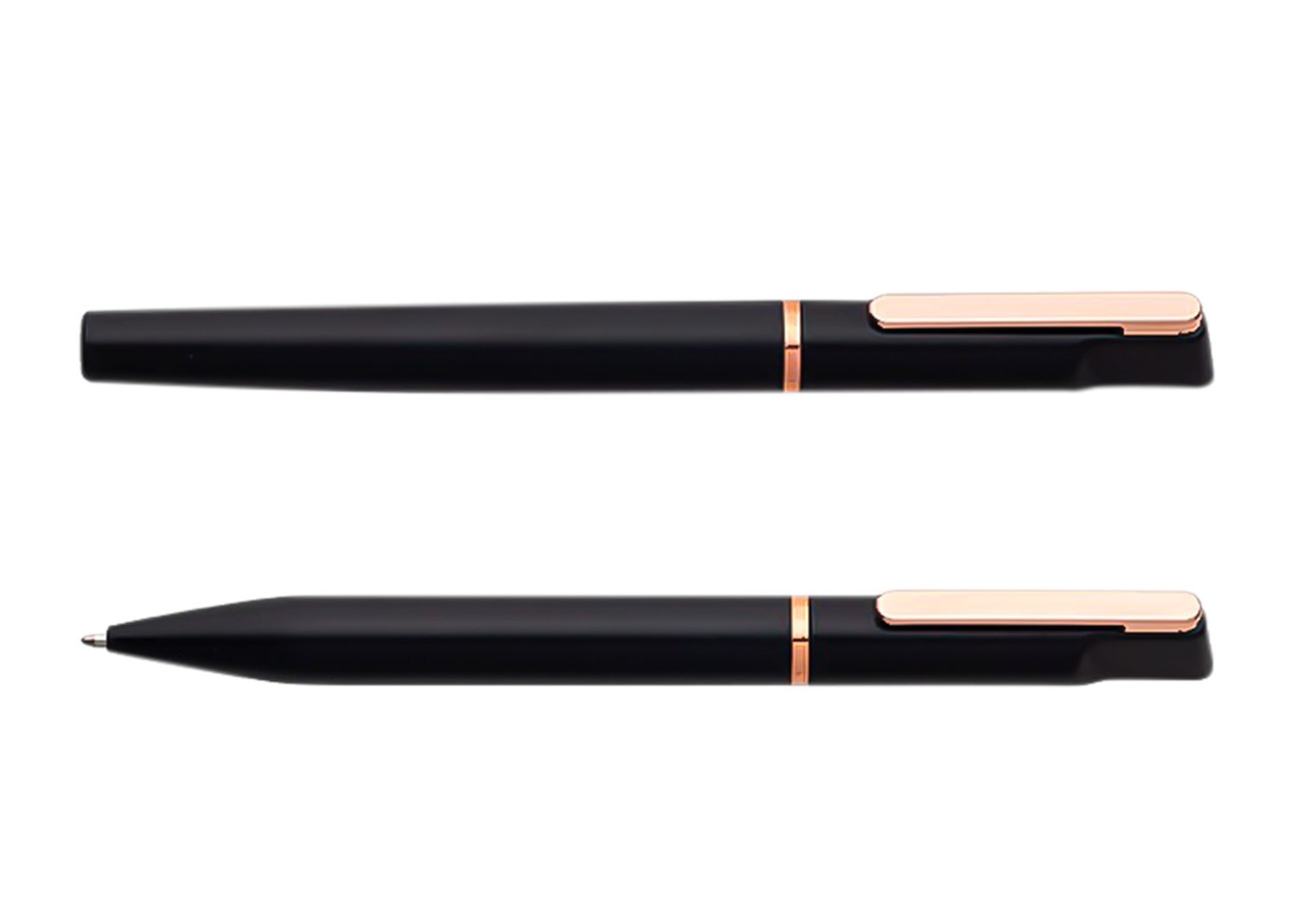 Set de escritura elaborado en aluminio reciclado, compuesto por bolígrafo con mecanismo giratorio (twist) y bolígrafo roller con tapa. Presentación en estuche rígido con detalles metálicos. Diseño elegante, funcional y de líneas clásicas. MATERIAL: Aluminio Reciclado, Caja Papel. MEDIDAS: Formato: (Alto X Diámetro x Ancho con Clip): Estuche: (5,4 X 17,4 X 2,3). Bolígrafo con Tapa y Twist: (13,8 X Ø 0,8 x 1,1). Peso: 66 gr.