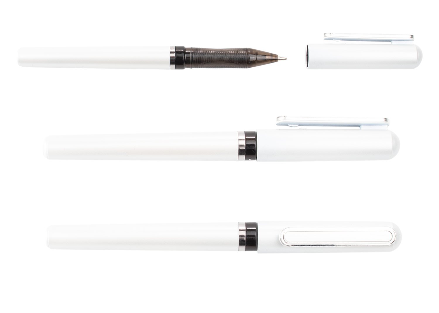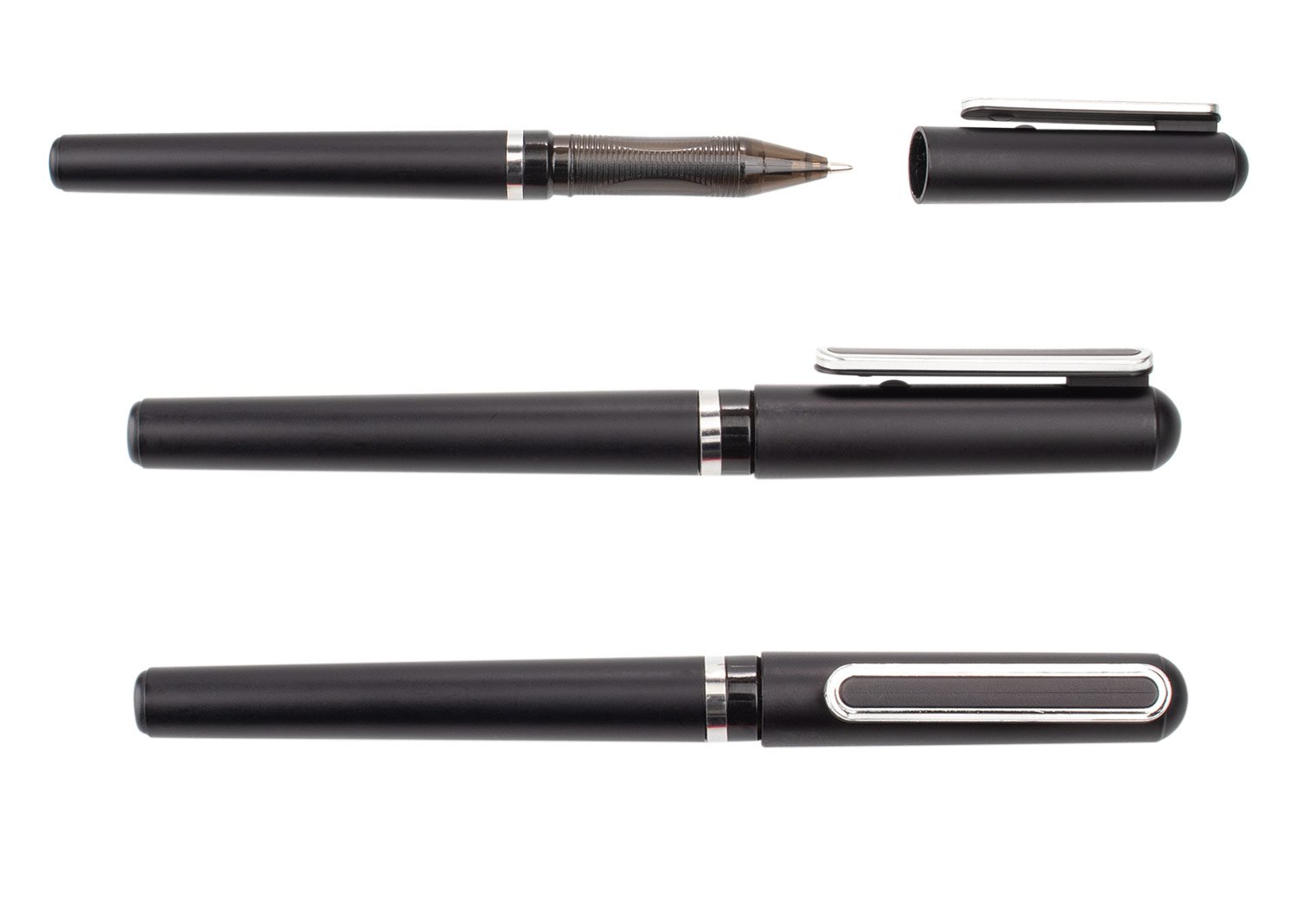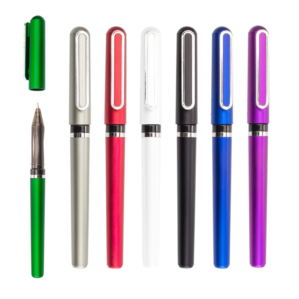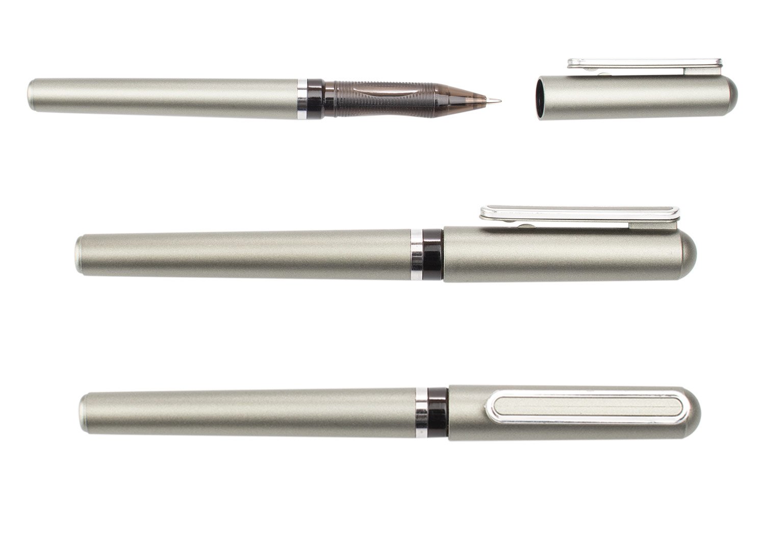 Cuerpo y capuchón de color metálico, clip de metal cromado, Bolígrafo de gel. (Bolígrafo/Esfero) Material: ABS Medidas: Formato: (Alto X Diámetro X Ancho con Clip): (14 X Ø 0,9 X 1,3). Peso: 9 gr.