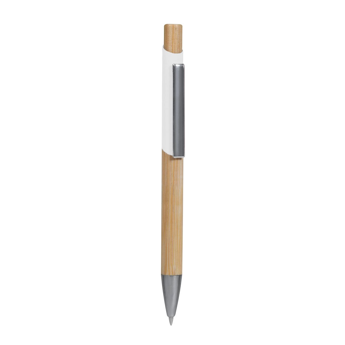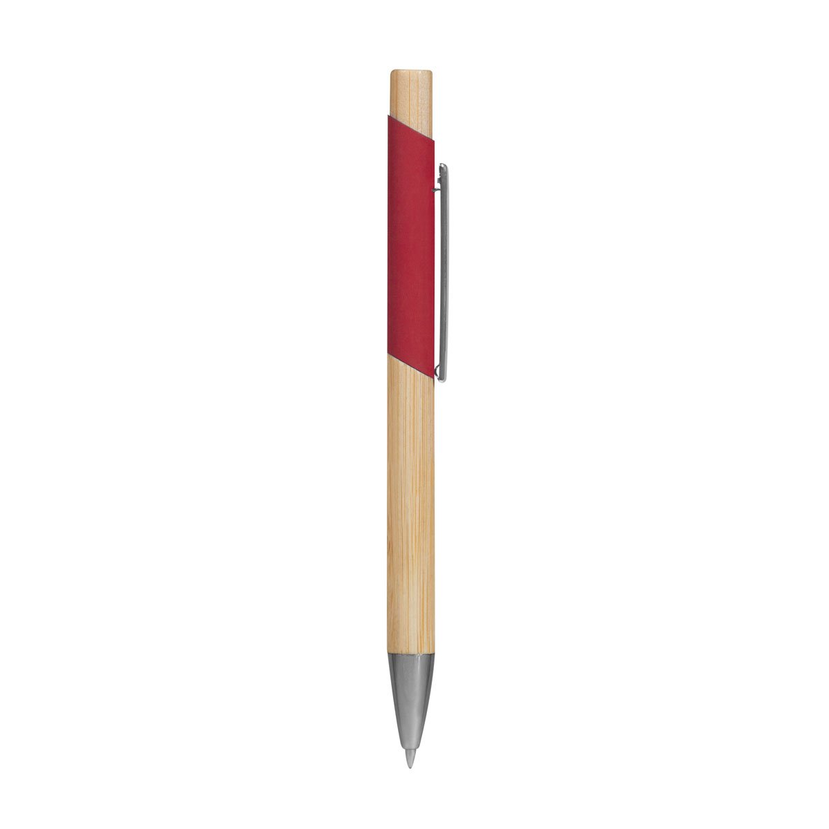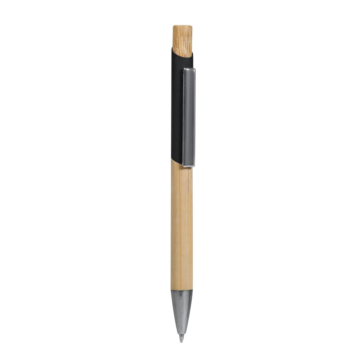 Boligrafo con terminado tipo rubber y grip de bambu. Acabados metalicos en clip y punta. Mecanismo pulsador.MATERIAL: Aluminio / Bambu TAMAÑO: 1 x 14 cm.