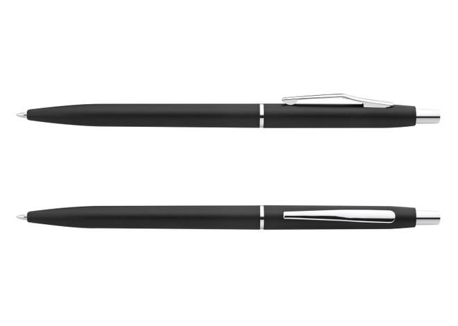 Bolígrafo plástico con acabado mate clip plateado. Sistema de apertura retráctil.