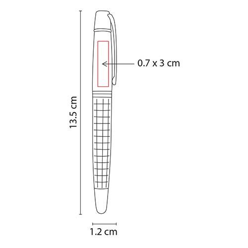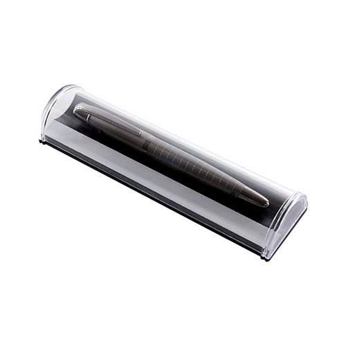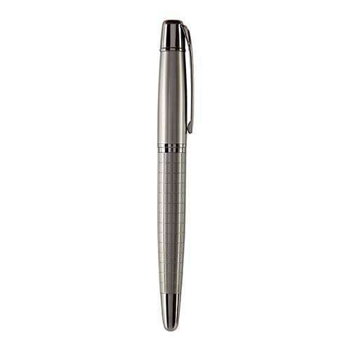 Bolígrafo roller ball con tapón. Incluye estuche. CATEGORÍA: BOLIGRAFOS METALICOS MATERIAL: Acero Inoxidable TAMAÑO: 1.2 x 13.5 cm COLORES: Gris CAPACIDAD: COLOR DE TINTA: Negra INFORMACIÓN DE IMPRESIÓN TÉCNICA: Láser / Serigrafía AREA: 0.7 x 3 cm INFORMACIÓN DE EMPAQUE MEDIDA: 37 x 28 x 25 cm. PESO: 8.20 kgs. CANTIDAD: 100 pza(s).