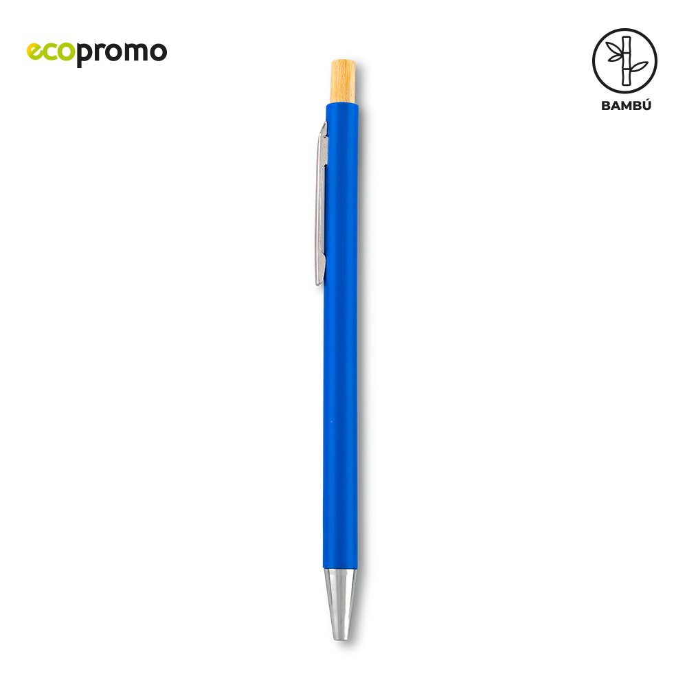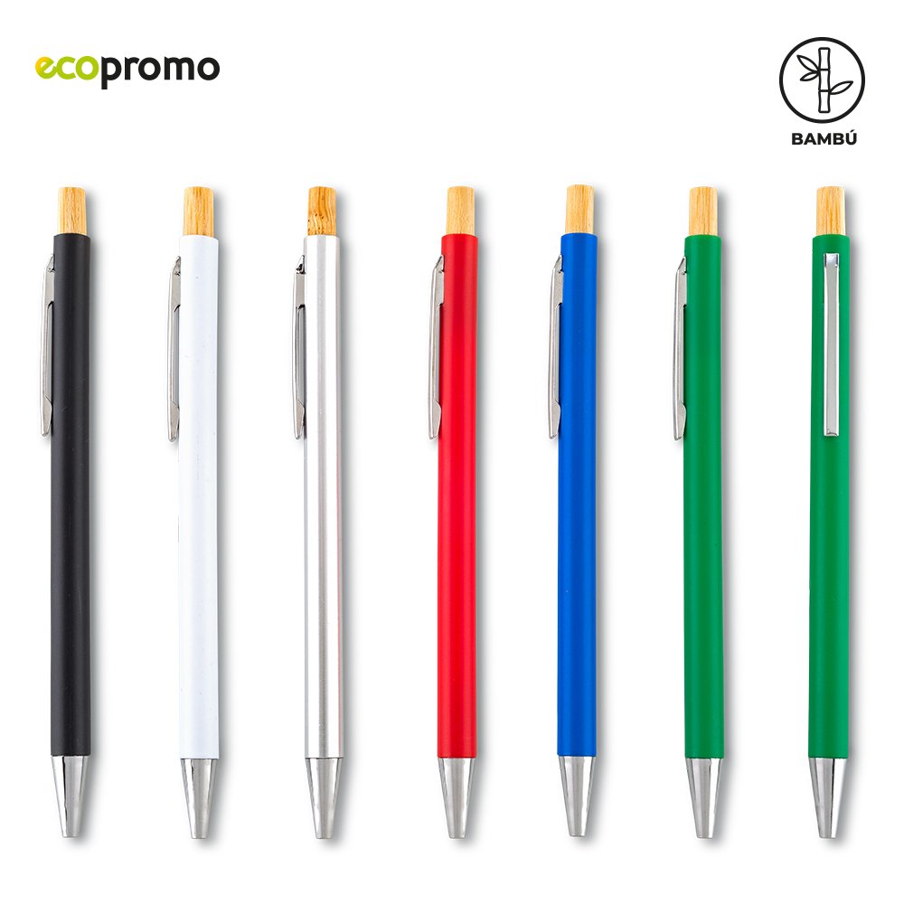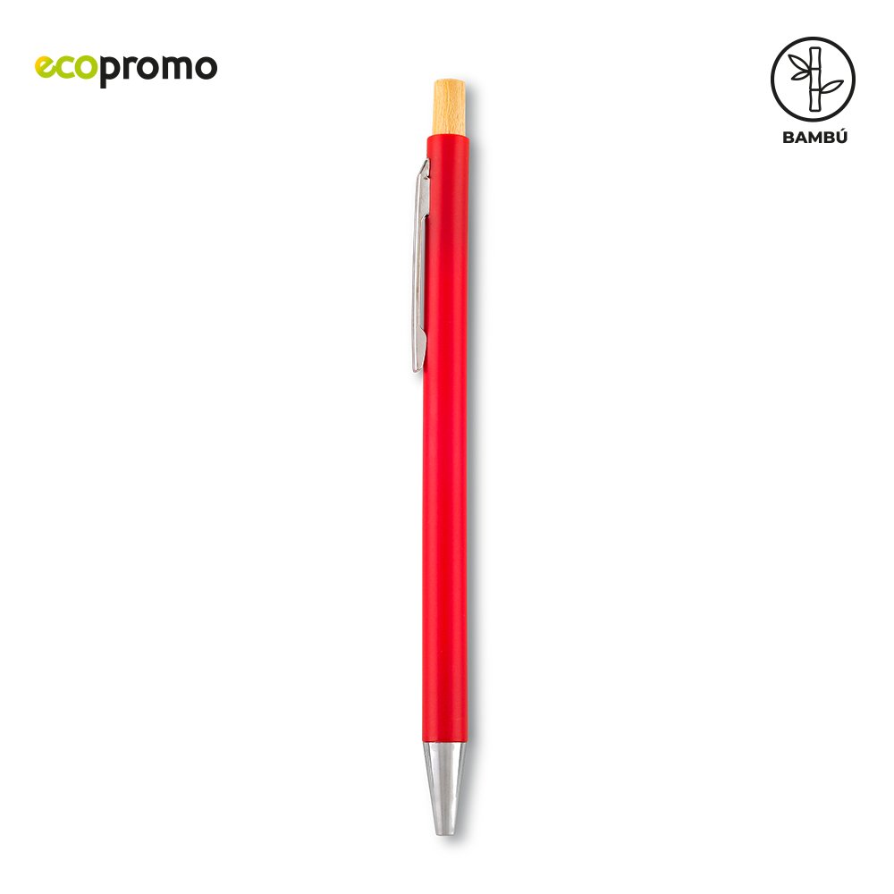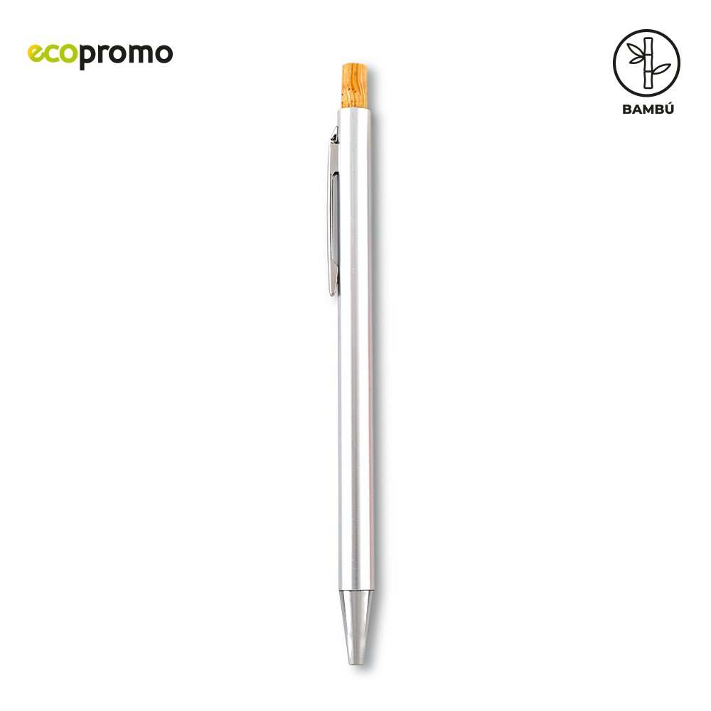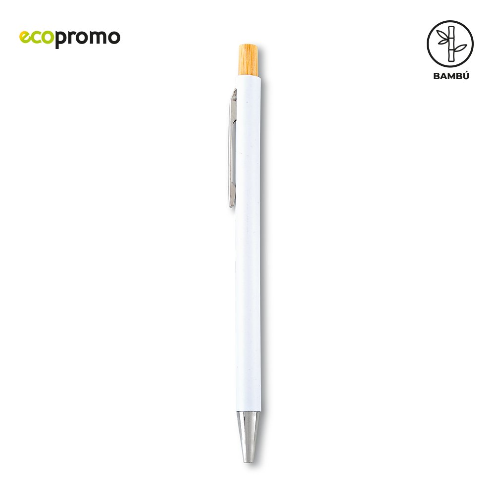 Bolígrafo plástico con mecanismo push y partes en bambú. Medidas: 14 cm.