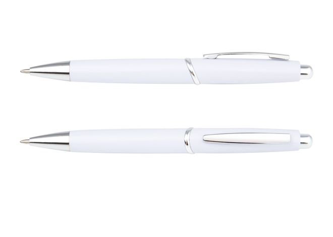 Bolígrafo con sistema retráctil en la parte superior. Con clip metálico.