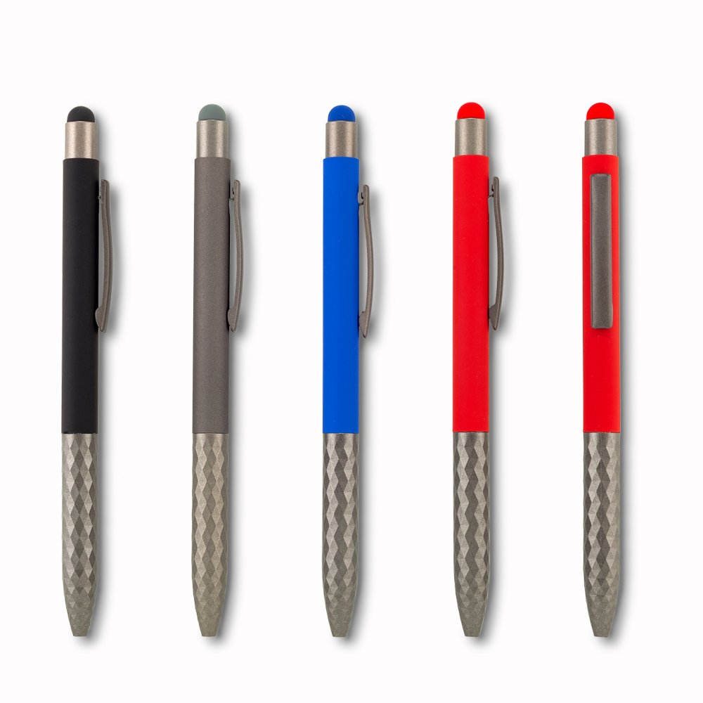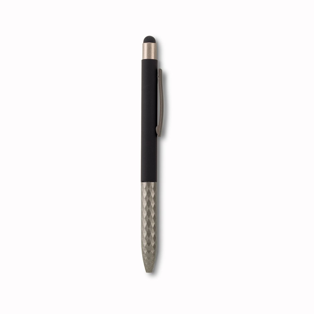 Bolígrafo metálico con stylus. Mecanismo push.Medidas: 14.5 cm.Marca:Láser.