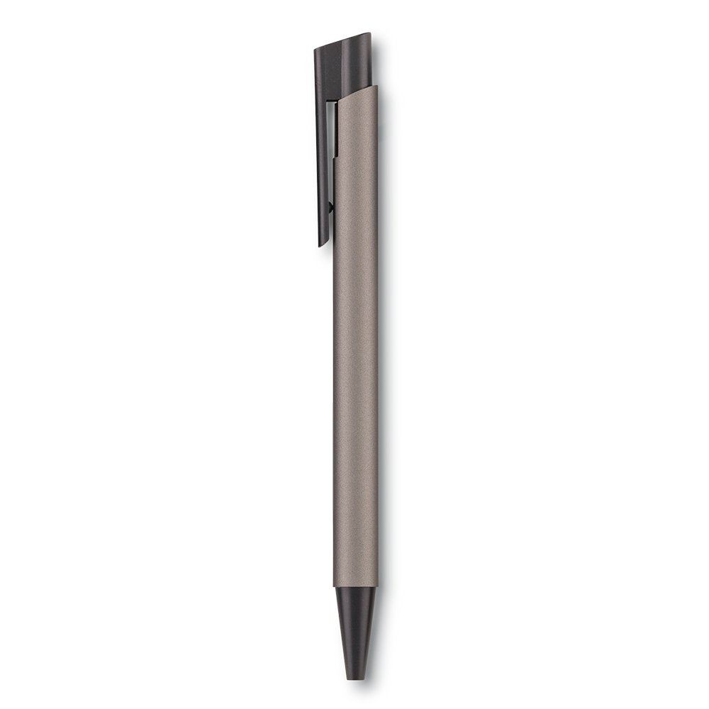 Bolígrafo metálico con mecanismo push y clip plástico. Medidas: 14 cm. Marca: 3.5 cm / Láser / Tampografía.