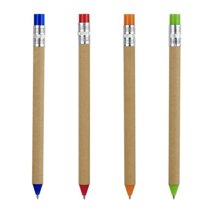 Material Eco-Friendly. Mecanismo pulsador. CATEGORÍA: BOLIGRAFOS FUNCIONES MATERIAL: Cartón / Plástico TAMAÑO: 0.9 x 16 cm COLORES: A/O/R/V CAPACIDAD: COLOR DE TINTA: Negra INFORMACIÓN DE IMPRESIÓN TÉCNICA: Serigrafía AREA: 0.6 x 6 cm INFORMACIÓN DE EMPAQUE MEDIDA: 58 x 26 x 18.5 cm. PESO: 7.00 kgs. CANTIDAD: 1,000 pza(s).