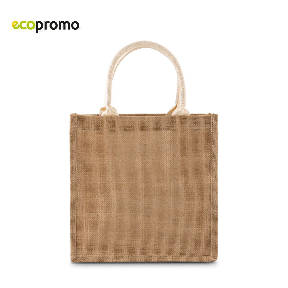 Bolsa en yute con fuelle y agarraderas. Medidas: 30 cm x 30.5 cm x 19 cm.