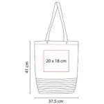 CATEGORÍA: BOLSAS MATERIAL: Yute / Algodón TAMAÑO: 37.5 x 41 cm COLORES: A/R CAPACIDAD: COLOR DE TINTA: INFORMACIÓN DE IMPRESIÓN TÉCNICA: Serigrafía AREA: 20 x 18 cm INFORMACIÓN DE EMPAQUE MEDIDA: 51 x 25 x 46 cm. PESO: 15.43 kgs. CANTIDAD: 100 pza(s).