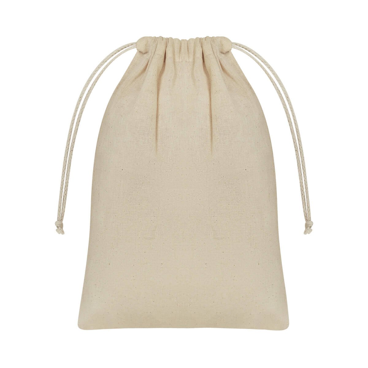 Bolsa con cierre de jareta. Fabricada con algodon natural, este accesorio ecofriendly es reutilizable, perfecto para utilizar como bolsa de regalo o para llevar pequenos accesorios. TAMAÑO:21 x 30 cm