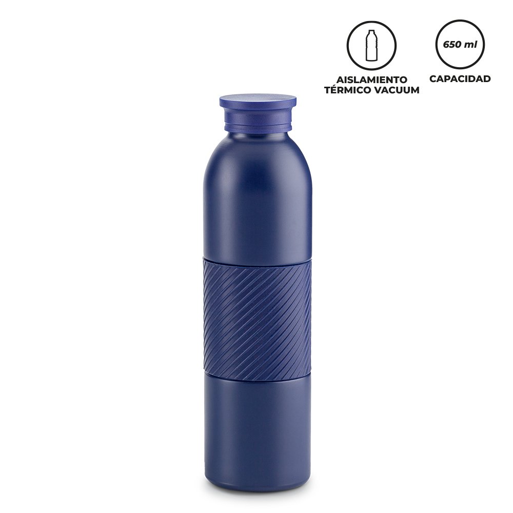 Botilito doble pared vacuum en acero inoxidable, con aislamiento térmico que mantiene la bebida fría o caliente hasta 6h aprox (puede variar dependiendo de las condiciones climáticas), con agarre en silicona y tapa plástica. Empaque caja individual. Medidas: 26 cm x 7 cm. Marca: 4 cm / Tampografía con tratamiento / Láser.