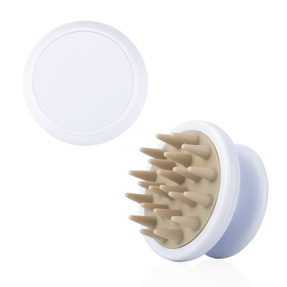 Cepillo masajeador para cuero cabelludo, fabricado en plástico con púas de silicona que brindan suavidad y comodidad. Cuenta con un mango ergonómico para un agarre seguro, ideal para aplicar shampoo, estimular la circulación y relajar durante el lavado. Resistente, fácil de limpiar y diseñado para uso diario. MATERIAL: Plástico + Silicona , MEDIDAS: Formato: (Diámetro X Alto): (Ø 6,8 X 4,7). Peso: 39 gr.
