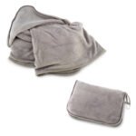 Cobija 100% en poliéster de doble uso. Puede ser usada de dos maneras: de cobija si se abre y de almohada cuando se compacta y se cierra. Bolsa en poliéster con cremallera, carabinero y reata frontal. Medidas: Cobija: 150 cm x 100 cm. Estuche: 31 cm x 21 cm x 10 cm. Marca: / Bordado.