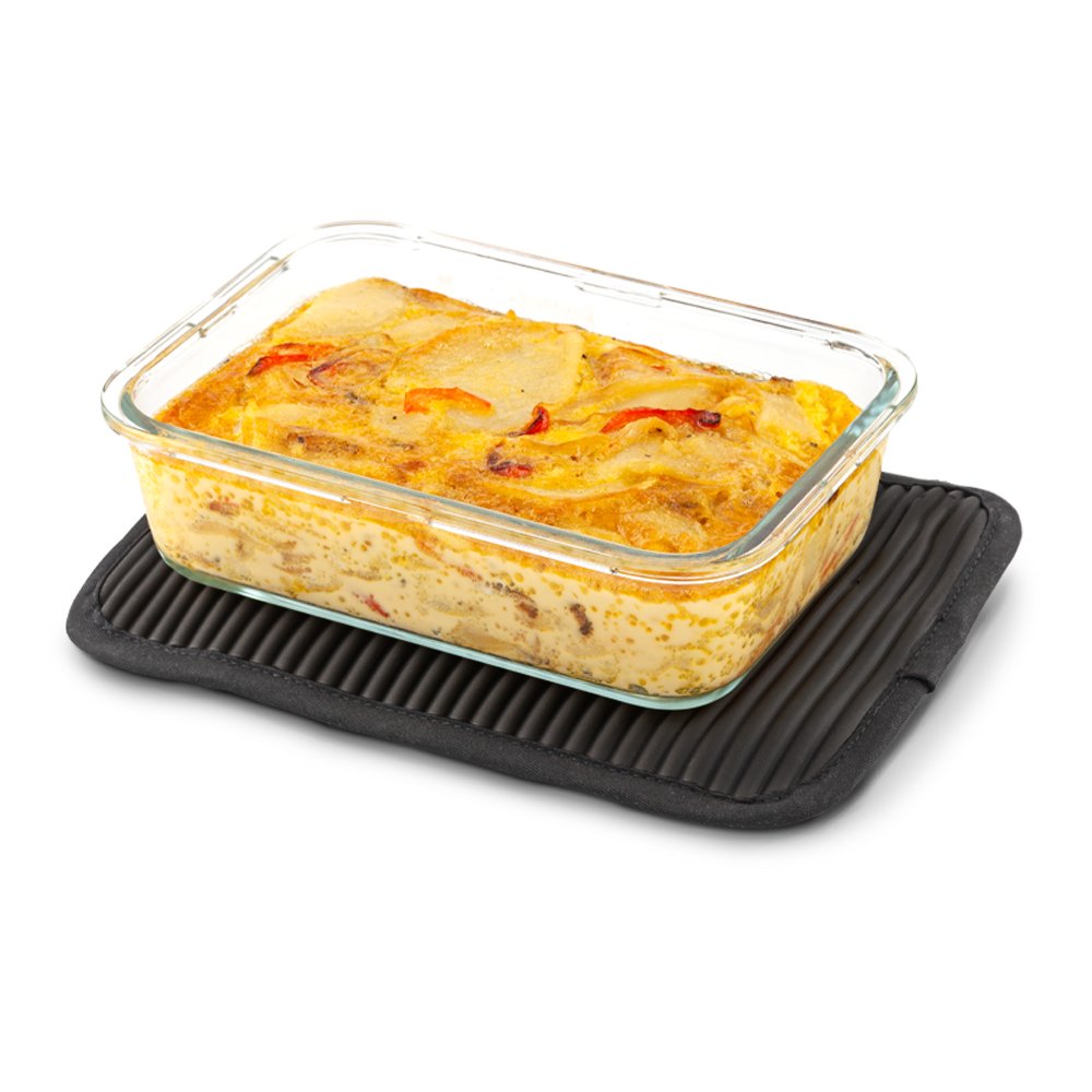 Coge ollas en poliéster con silicona. Medidas: 26 cm x 18 cm.