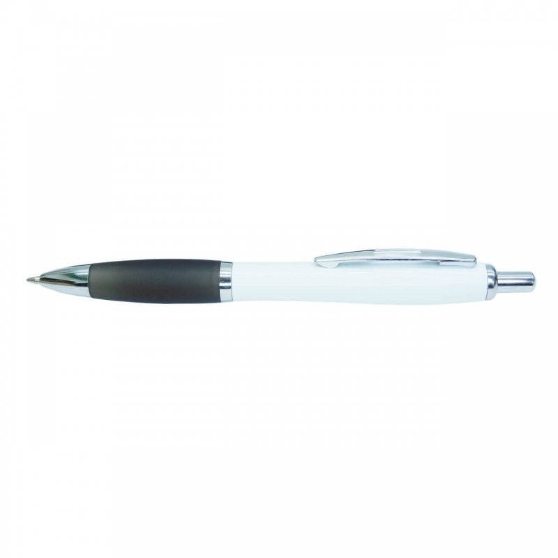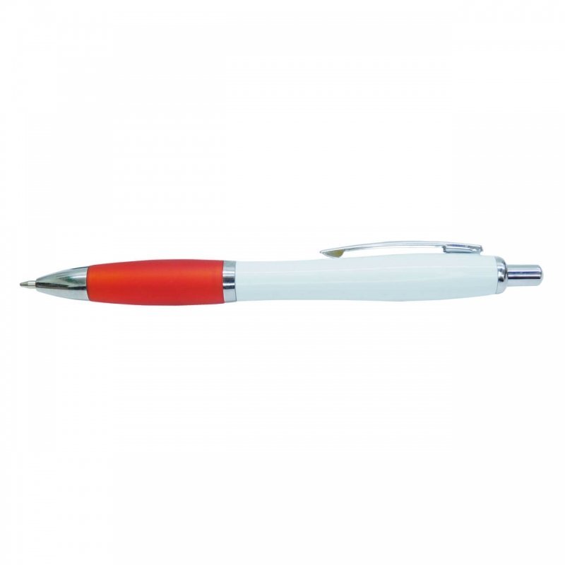 Esfero plástico retráctil con clip plateado agarre antideslizante de color. Largo 14 cm. Tipo de Impresión: Impresión Tampografía Tinta Plástica. Área de Impresión: cuerpo 50 x 7 mm