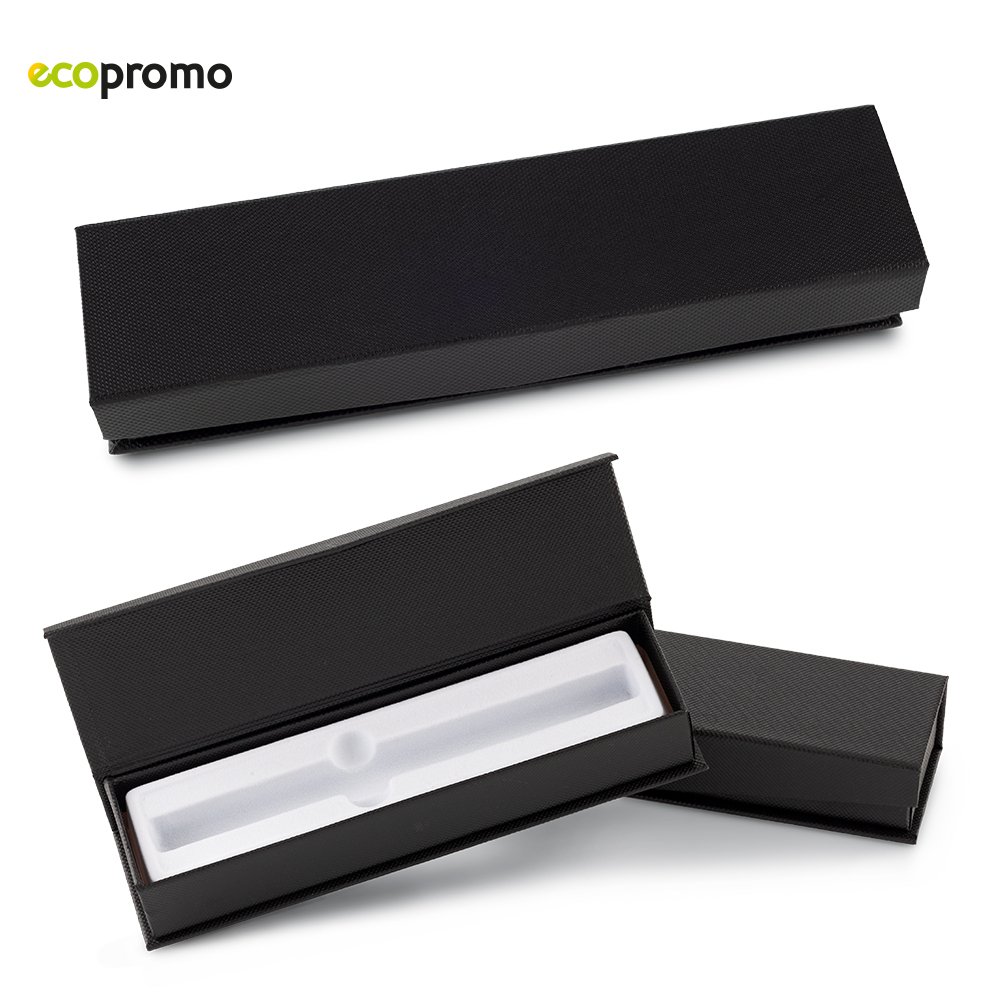 Estuche en cartón con cierre magnético para 1 bolígrafo. Medidas: 17 cm x 6.4 cm x 3.6 cm.