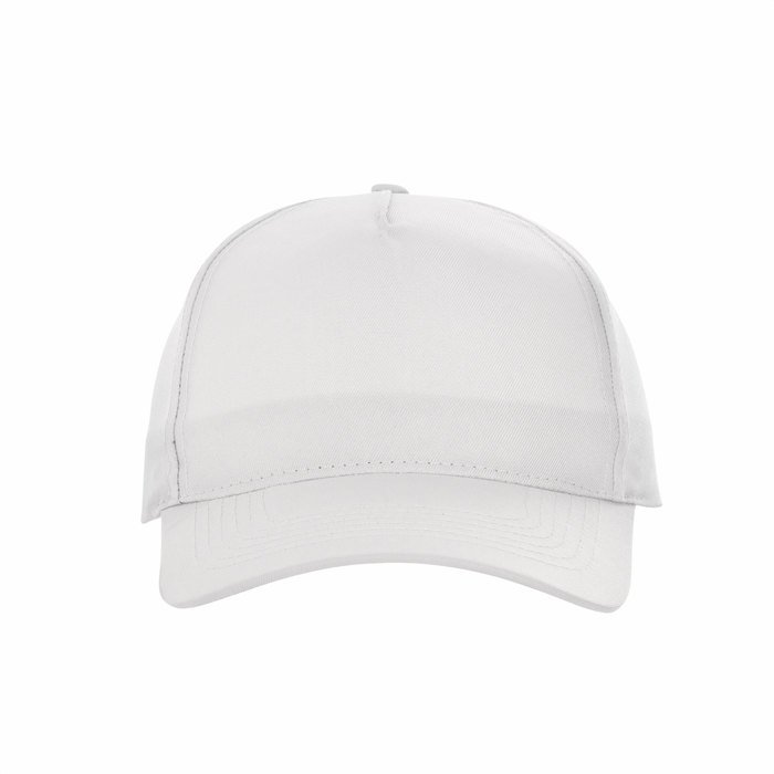 Gorra con visera. 5 paneles. Orificios de ventilación bordados. Botón forrado. Banda absorbente de poliéster. Cierre ajustable de velcro. Medidas: 19 x 26 x 12 cm. / 60 cm. circunferencia. Materiales: 100% poliéster.