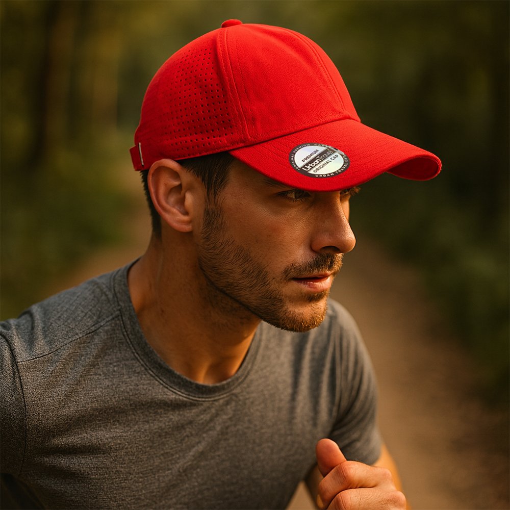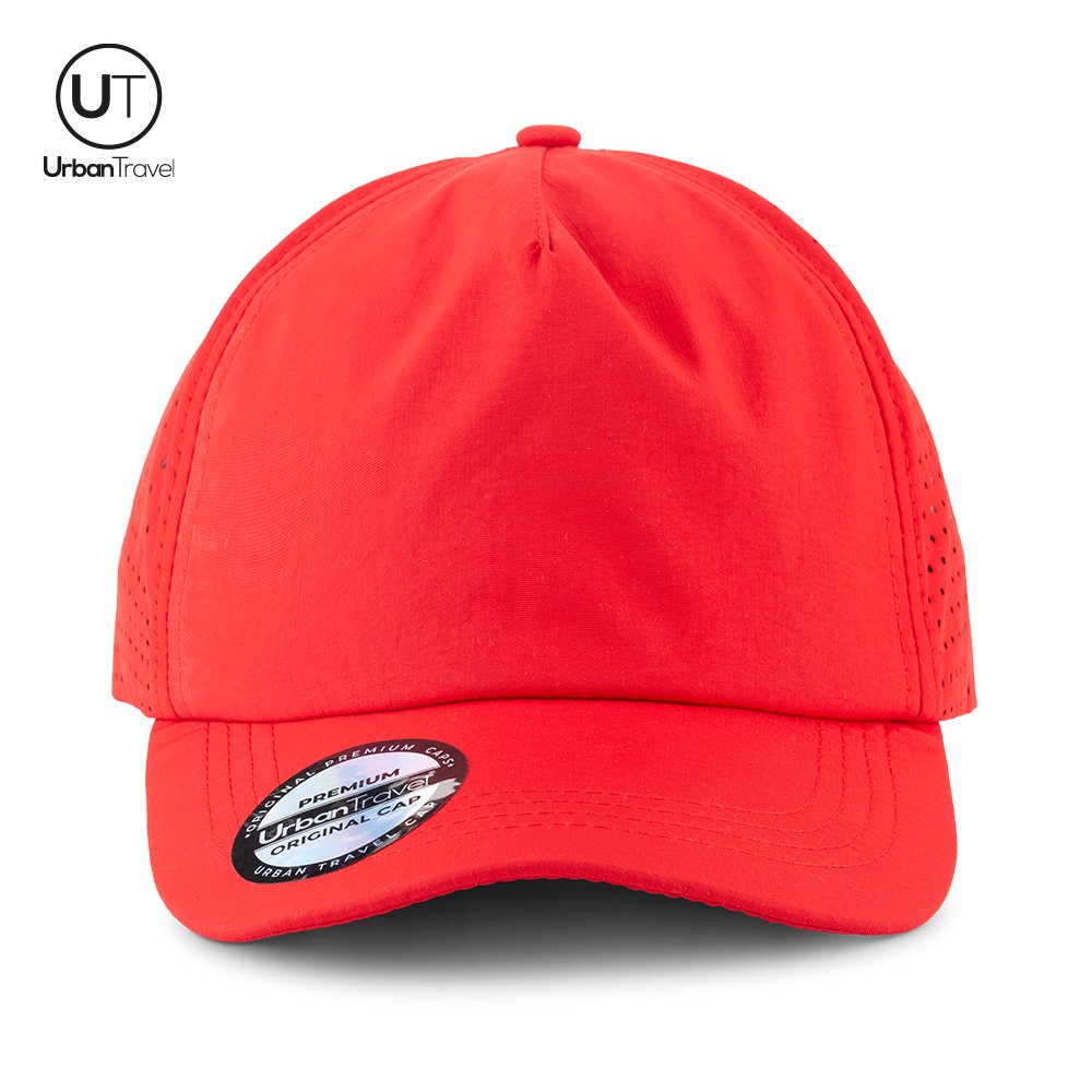 Gorra deportiva en nylon de 5 páneles con 4 hojaletes y cierre de hebilla metálica. Marca: Se define por puntadas / Bordado o Screen.