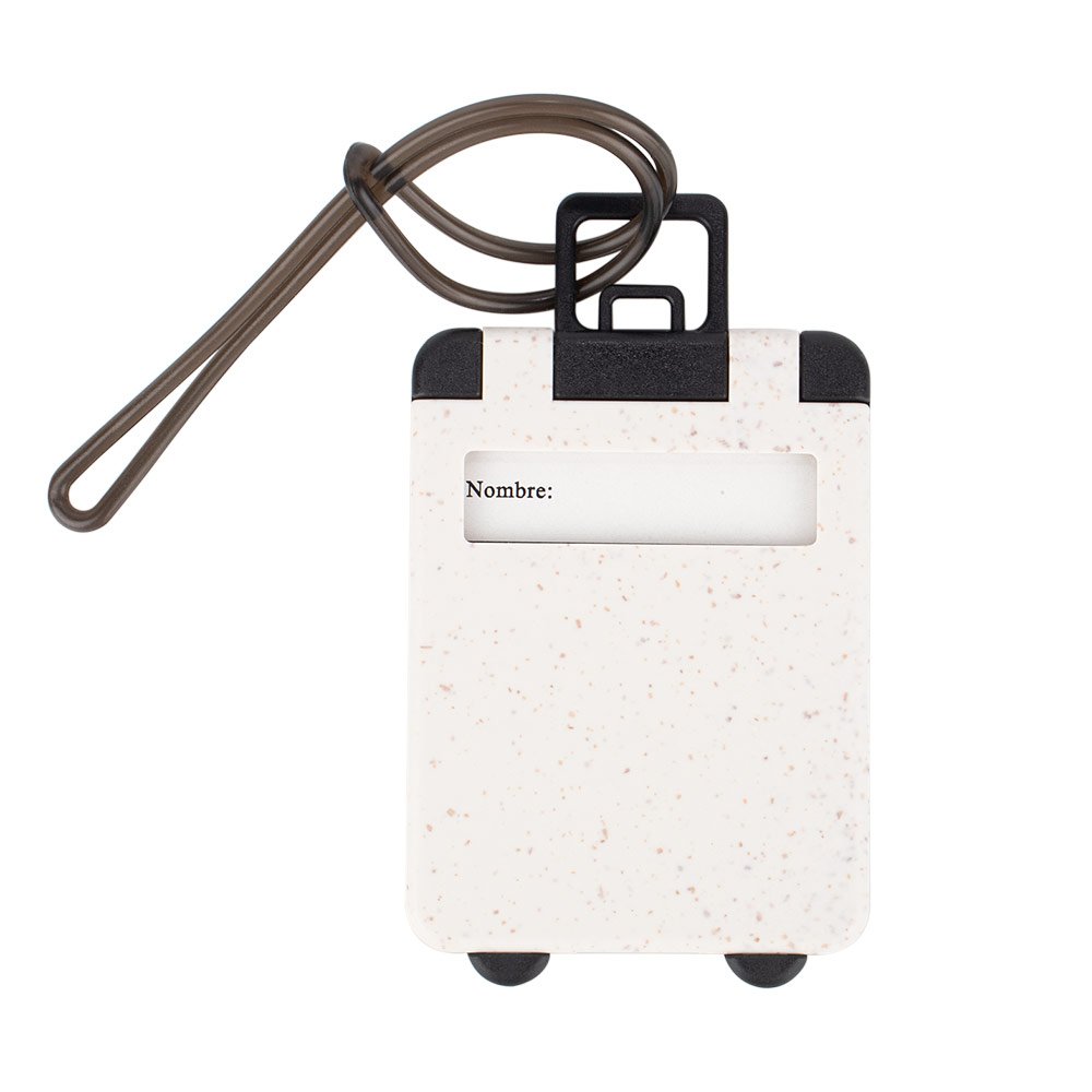 Etiqueta de equipaje ecológica fabricada en material de paja de trigo, con correa de PVC resistente para sujetarla fácilmente a maletas o mochilas. En su interior incluye una pegatina para datos personales como nombre, dirección, correo electrónico y teléfono, lo que facilita la identificación del equipaje en caso de pérdida. MATERIAL: PP + Paja de trigo + PVC , MEDIDAS: Formato: (Ancho X Alto): (5,5 X 9,5). Correa: (12,5). Peso: 14 gr.