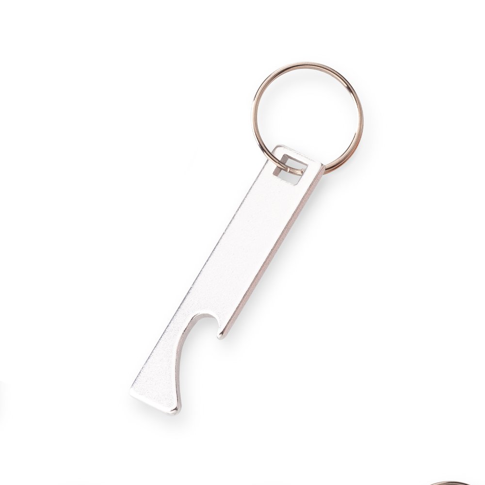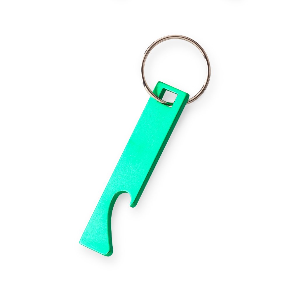 Llavero destapador en aluminio. Medidas: 6.2 cm x 1.2 cm.