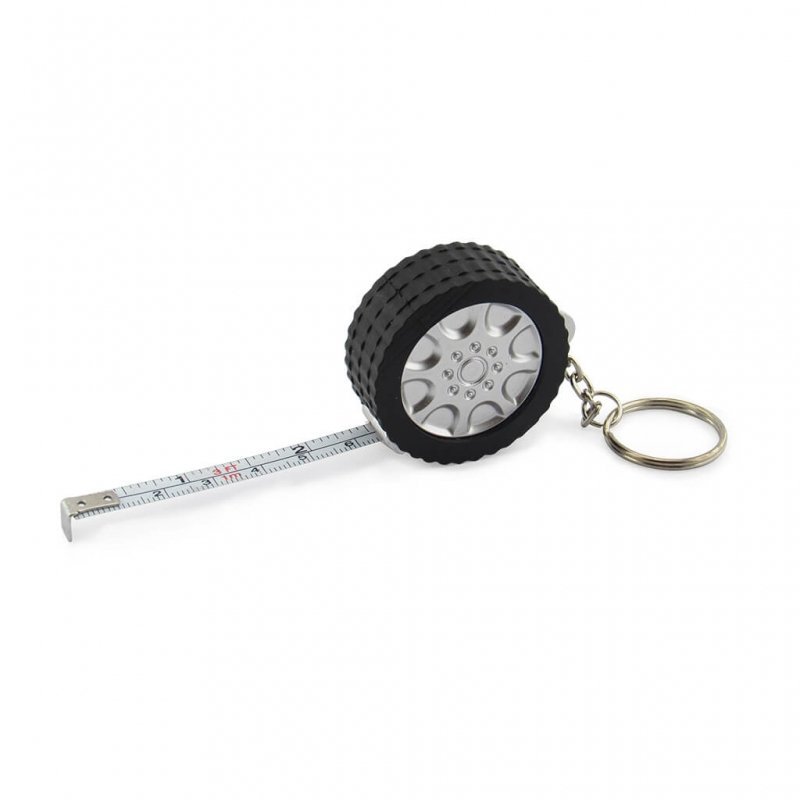 Llavero en plástico y llanta en goma, metro de 100 cm. Diámetro: 4 cm. Material: Plástico. Tipo de Impresión: Grabado Láser. Impresión Tampografía Tinta Plástica. Área de Impresión: Diámetro: 23 mm-IMPORTANTE: Antes de realizar el pedido, verificar existencias con su asesor.