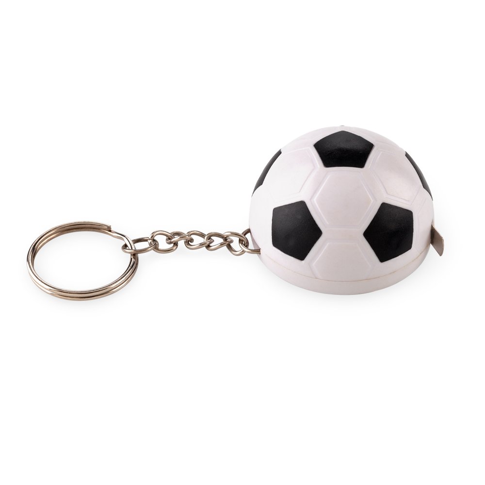 Llavero plástico con metro de 1 mt en forma de balón. Medidas: 3 cm x 4 cm diámetro.
