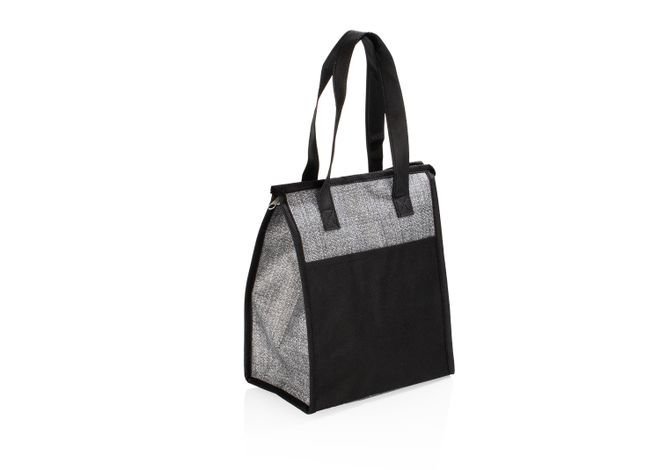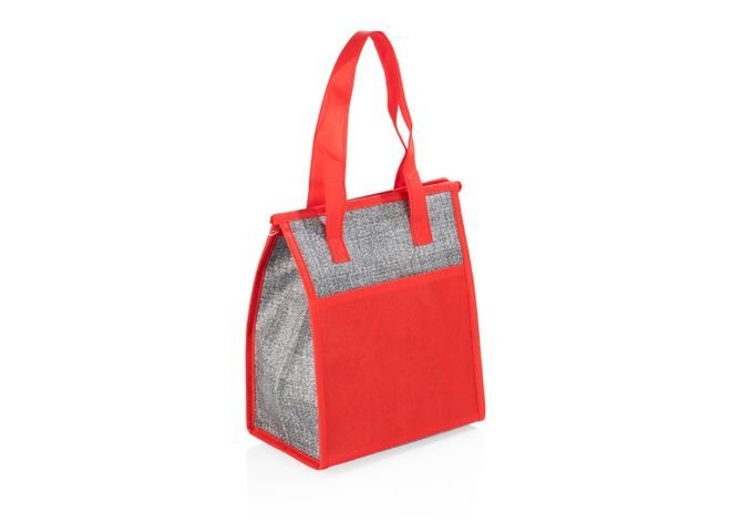 Lonchera térmica con cremallera, agarraderas y revestimiento interior en aluminio para conservar la temperatura por un mayor tiempo. MATERIAL: Recubrimiento Kambrell 110 g + algodón perlado de 2 mm + papel de aluminio. MEDIDAS: 23 X 27,4 X 13,5. ÁREA DE IMPRESIÓN APROXIMADA: Screen: 14 cm ancho x 12 cm alto. MARCA: SE. SUGIERE: Screen Serigrafia