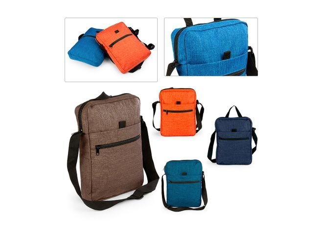 Manos libres con cargadera ajustable y agarradera. Bolsillo principal y frontal en cremallera, bolsillo medio con cierre en velcro.