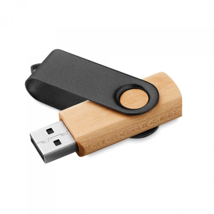 Con clip metálico y cuerpo en madera de bambú. De: 2 x 5.8 x 1 cm. De 16 GB.Impresión: Tampografía metálica – Grabado laser