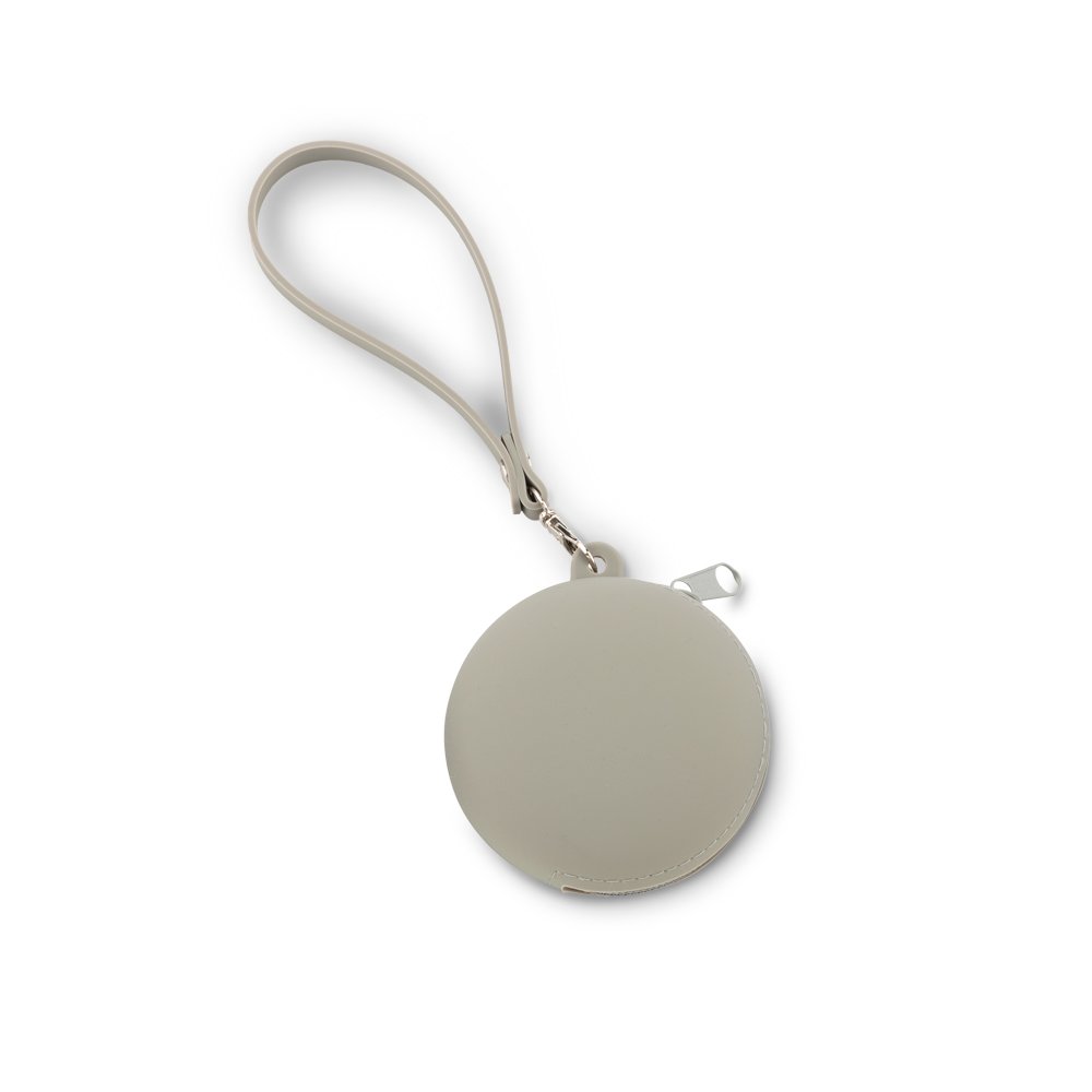 Monedero en silicona flexible. Con accesorio en silicona para poderlo cargar. Medidas: 8.5 cm x 8 cm x 2 cm. Marca: Tampografía en silicona.