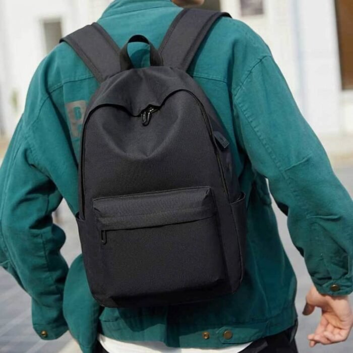 Morral estándar con dos servicios. Bolsillos laterales sin cremallera. Bolsillo frontal con cremallera. Bolsillo para laptop o portátil. Puerto USB y cable para Powerbank. Cavidad para audífonos. Alto 45 cm, Ancho 30 cm, Profundidad 13 cm, Material Poliester Impermeable. Tipo de Impresión Vinilo Textil.