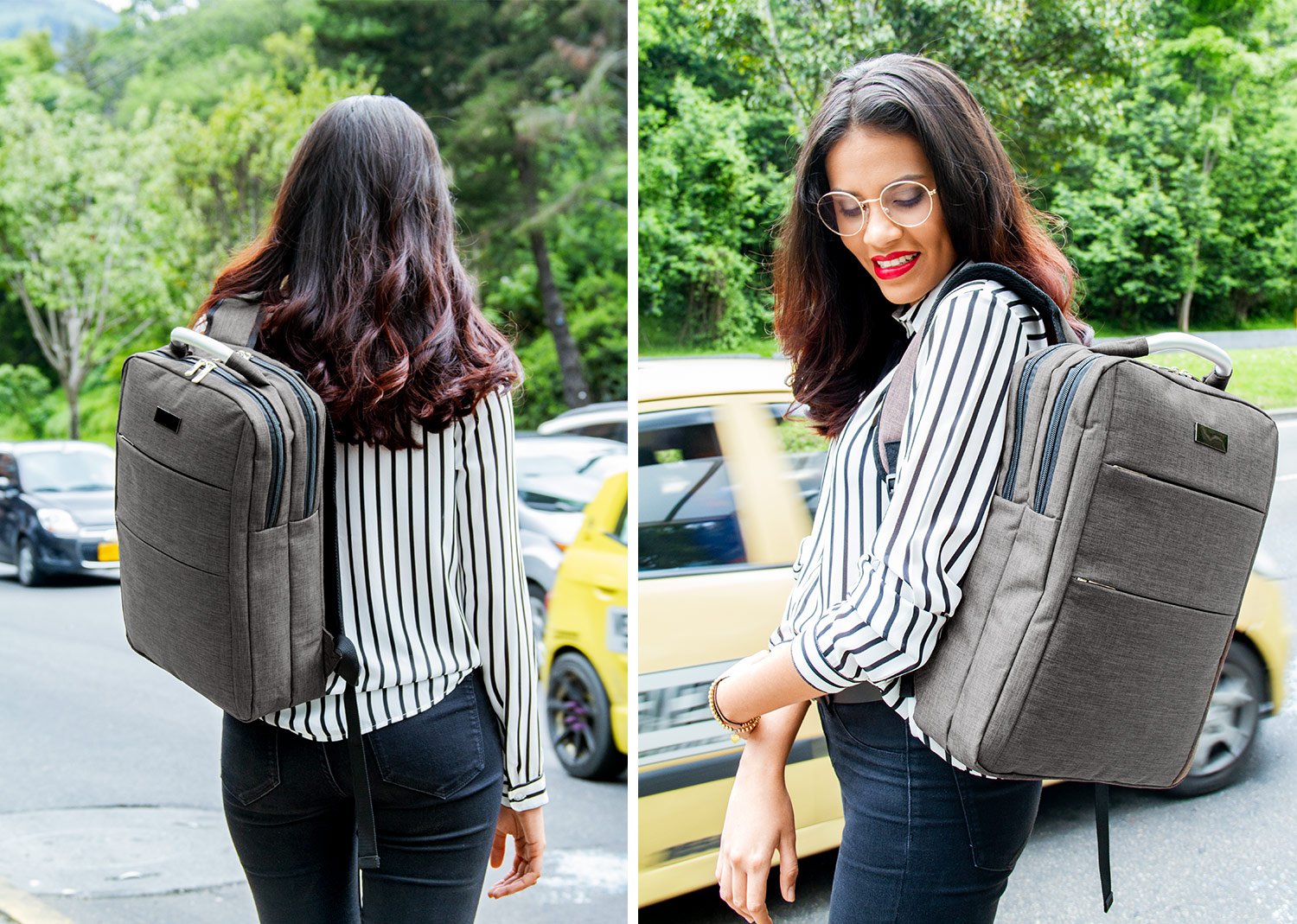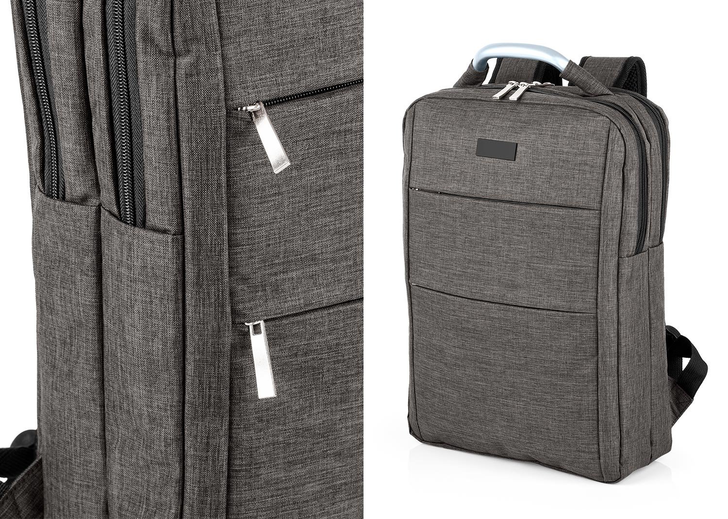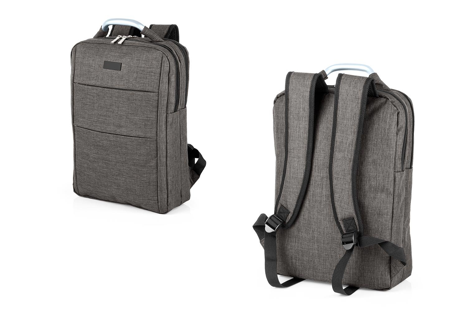 Morral con agarradera en Aluminio y cargaderas ajustables, un compartimento con velcro para portátil de hasta de 14” y el otro con bolsillo interior para bolígrafo y libreta. Doble Bolsillo frontal con cierre de cremallera. Incluye placa metálica para marcar láser. Volumen aproximado: 14 litros. MATERIAL: 100% Poliéster. MEDIDAS: 29 x 40 x 11 cm. Peso unitario: 0,60 kg. MARCA: SE SUGIERE: Láser