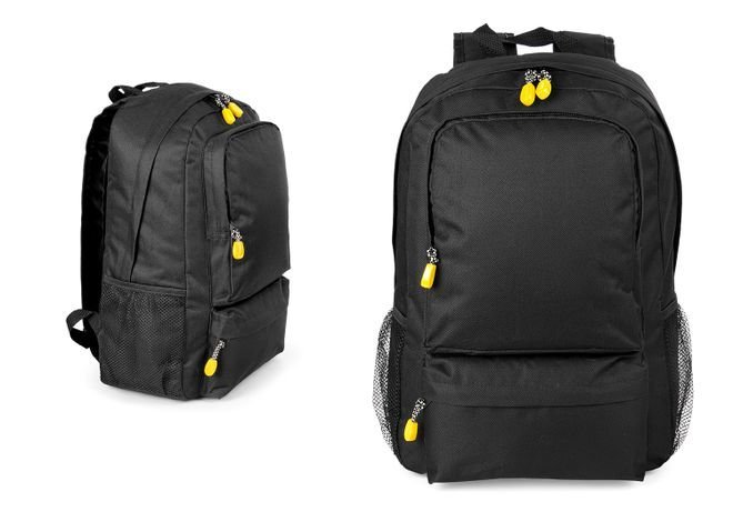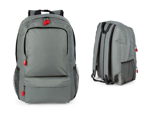 Morral con cargaderas ajustables, Bolsillos laterales en malla, bolsillos frontales y principal con cierre en cremallera, compartimiento para el portátil de 14″.