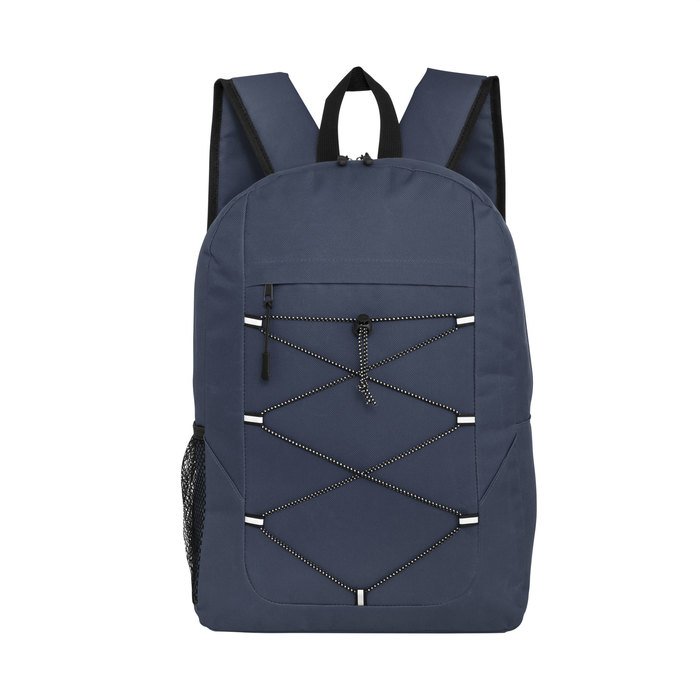 Morral outdoor. Compartimento principal con doble cierre. Bolsillo frontal con cierre, cordón elástico cruzado ajustable y un bolsillo de red lateral para transportar botellas. Detalles reflectivos. Cierres metálicos con deslizadores de goma. Correas regulables y espalda acolchadas. Medidas: 43,5 x 30 x 14.5 cm. Capacidad: 18 litros