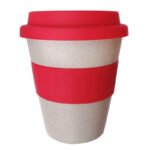 Mug elaborado en fibra de bambú. Con tapa y aro en silicona resistentes al calor. De 350 ml. De 11.5 x 10 cm. Impresión: Tampografía silicona