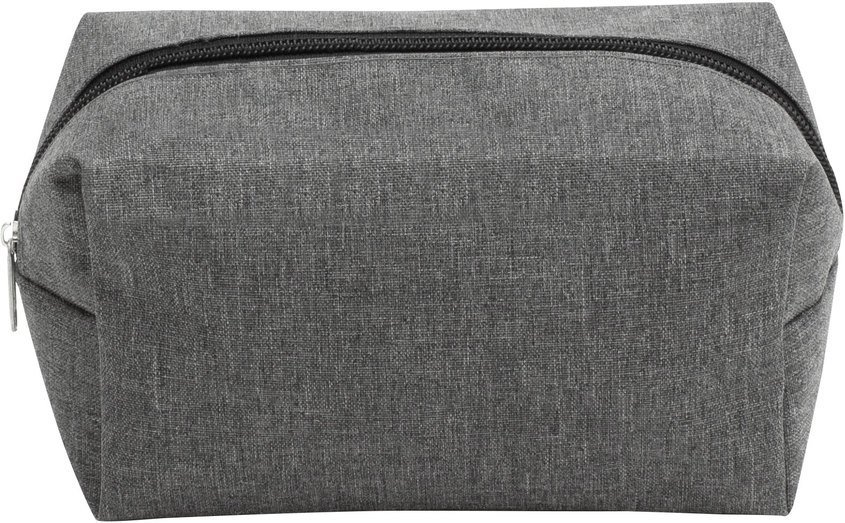 9,5 x 10 x 17,5 cm. Poliéster. Necessaire con amplio compartimento. Interior de color negro y cierre del mismo color. Tipo de marcación: Tampografía, Serigrafía Medidas del producto: Ancho: 56 Altura: 32 Profundidad: 26
