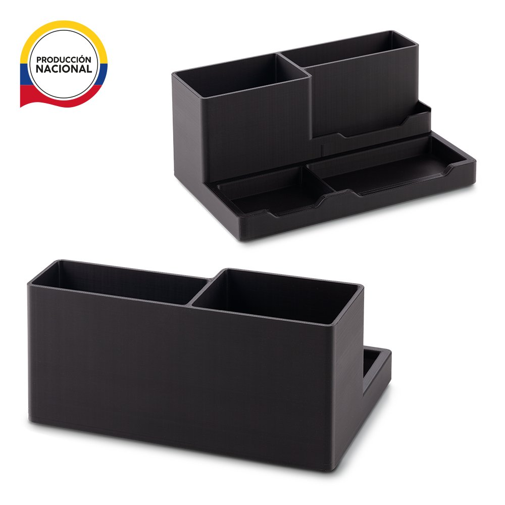 Organizador de escritorio plástico. Incluye taco de papel de 100 hojas. Medidas: 18 cm x 12 cm x 8.8 cm.