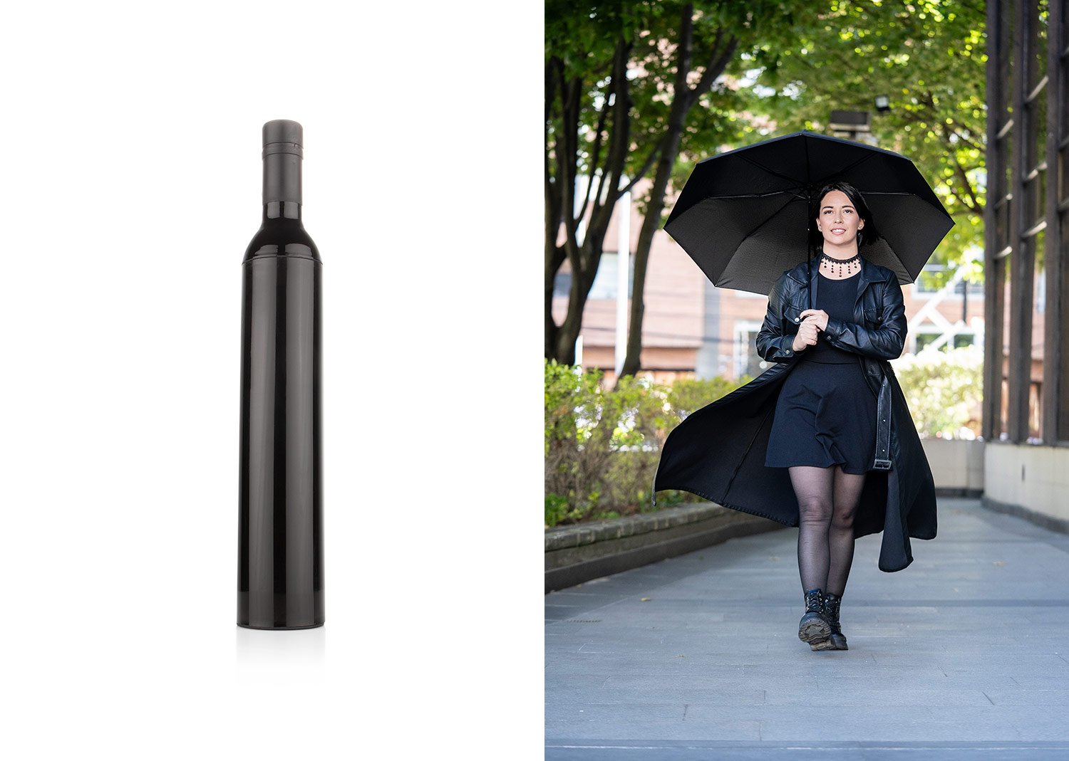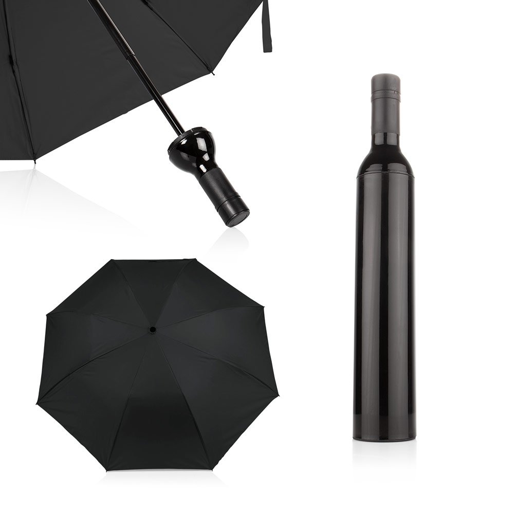 Paraguas de alta calidad confeccionado con tela Pongee 190T, con eje y varillas metálicas. Su estructura de aluminio ligero y duradero garantiza una protección confiable en días lluviosos. Incluye estuche con forma de botella. (Paraguas/Sombrilla) material: Pongee 190T, medidas: 19,2 pulgadas; Casco: 38 cm x 8 cascos; Cobertura: 98 cm; Estuche: 30.5cm x 5,1cm de diametro ,