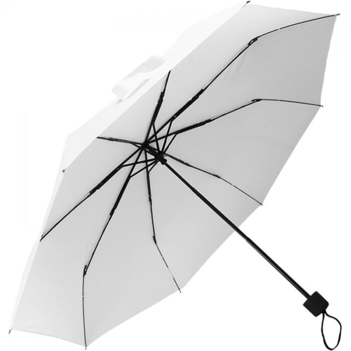 Poliéster pongee 190T de 21 pulgadas. Estructura metálica de color negro, mango en caucho y funda del mismo material. Cobertura: 97 cm. Casco: 37 cm. Impresión: Screen.