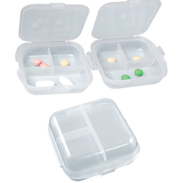 Pastillero plegable con 6 compartimientos. De: 7,5 x 6,7 x 3,5 cm.Impresión: Tampografía