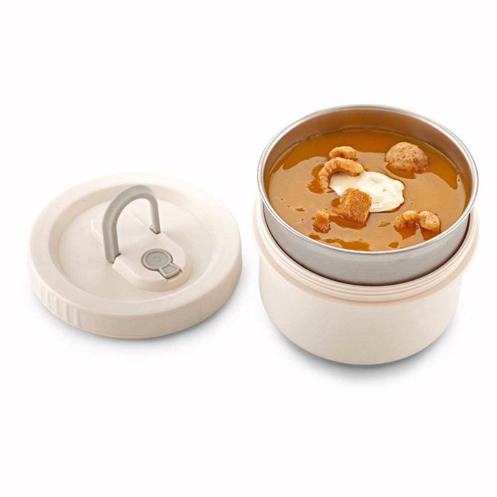 Portacomidas doble pared en plástico e interior en acero inoxidable de 660 ml. Medidas: 9 cm x 11.5 cm díametro.Marca: / Tampografía.