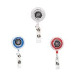 Porta gafete retráctil con clip sujetador. Incluye flexómetro de 100 cm.